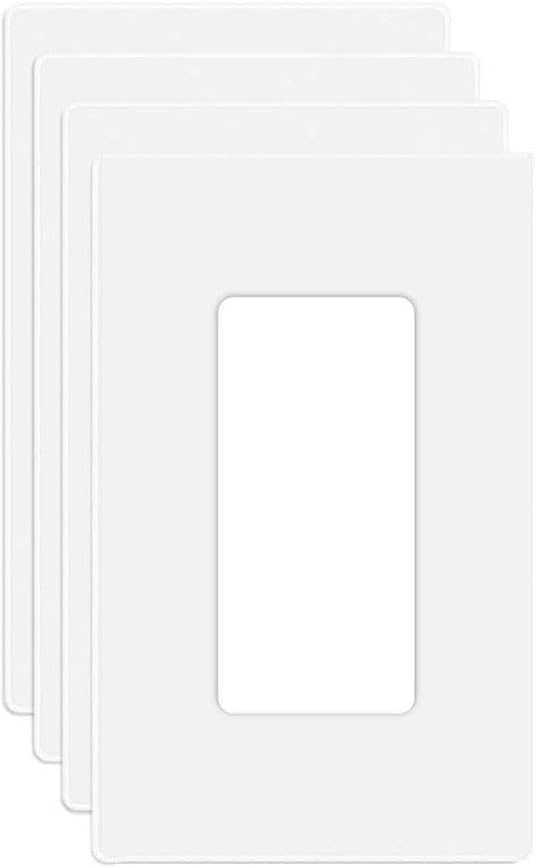 1-Gang Screwless Decora Wall Plate Cover Single Switch Outlet Electrical Faceplate for Light Switch, Smart Switch, Receptacle, Dimmers, USB Outlet, GFCI, Child Safe Cover Plate, White (4-Pack)