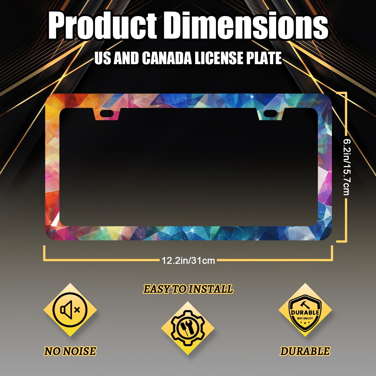 Abstract Shiny License Plate Frame Colorful Bling License Plate Holder for Personalized Car Decorative Stainless Steel Funny License Plate Cool Auto Part with Screws Men Women 12.2" x 6.2"