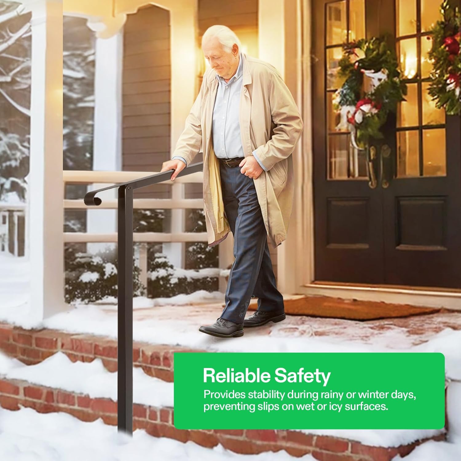 - Sturdy & Durable: Made of premium iron for stability and durability, this handrail can withstand harsh weather conditions, including rain and snow; Thick black powder coating reduces chance of peeling off, rust, scratches, and discoloration, making the railing easy to maintain and clean