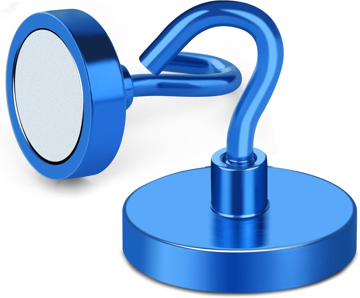 MIKEDE Magnetic Hooks Heavy Duty, 150LB Strong Magnet with Hook, Super Neodymium Extra Strength Industrial Hooks for Hanging, Toolbox, Cruise, Grill(Blue,10 Pack)