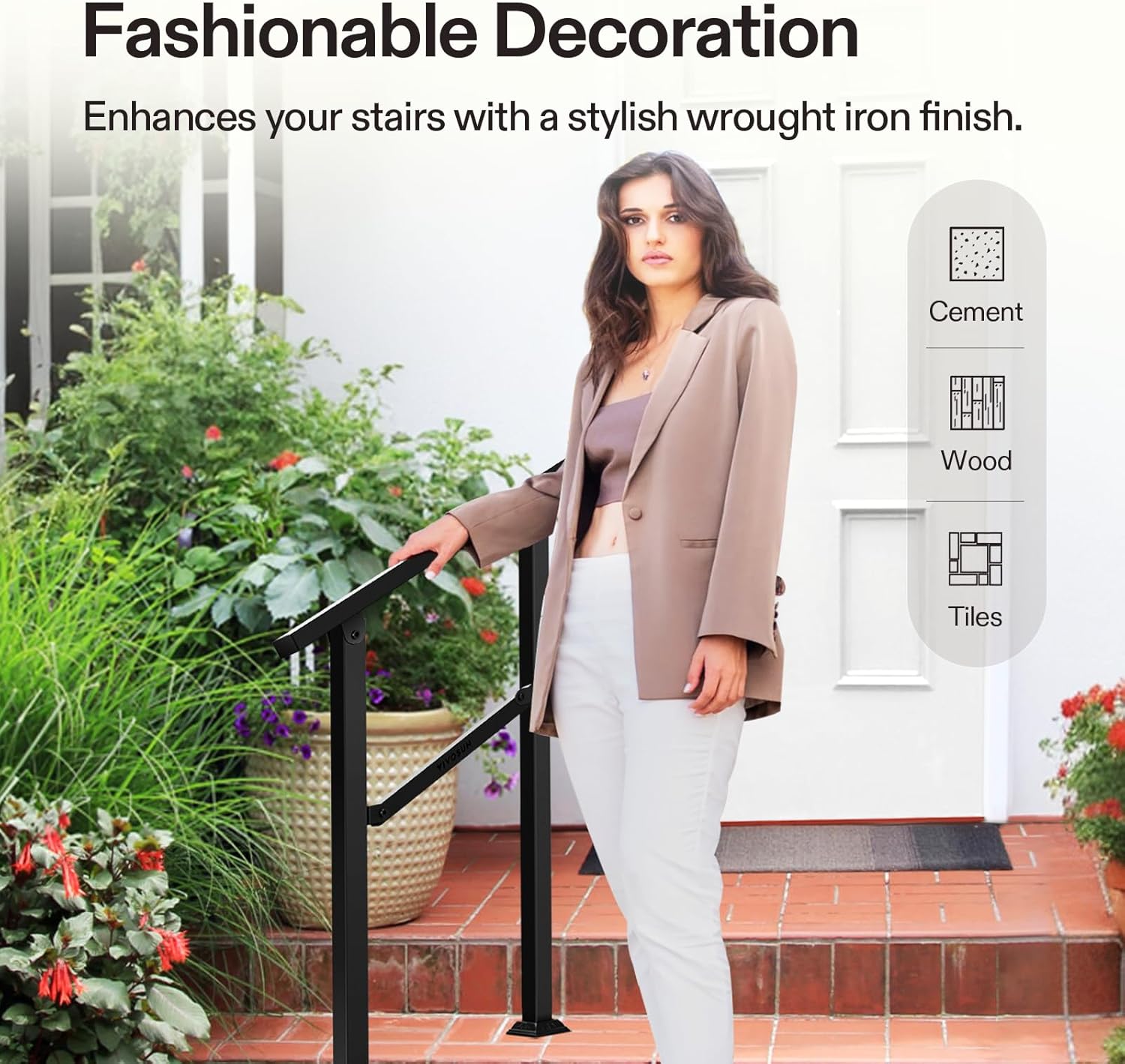 - Sturdy & Durable: Made of premium iron for stability and durability, this handrail can withstand harsh weather conditions, including rain and snow; Thick black powder coating reduces chance of peeling off, rust, scratches, and discoloration, making the railing easy to maintain and clean