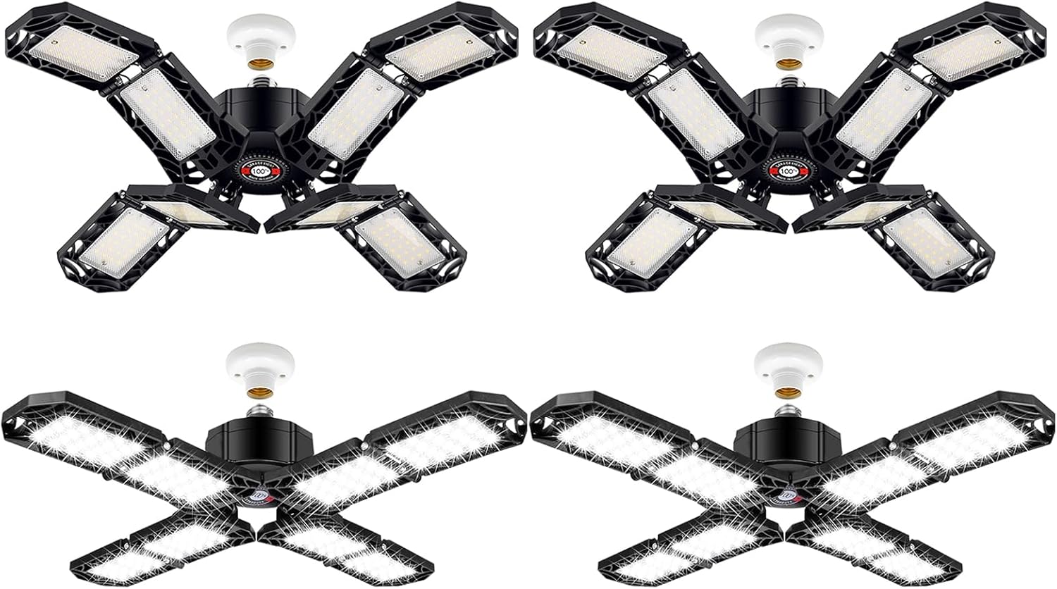 4 Pack LED Garage Light, Super Bright Screw in E26/E27 Ceiling Shop Work Lamp, 200W 20000 Lumen Deformable Basement Bulb Fixture with 8 Adjustable Panels
