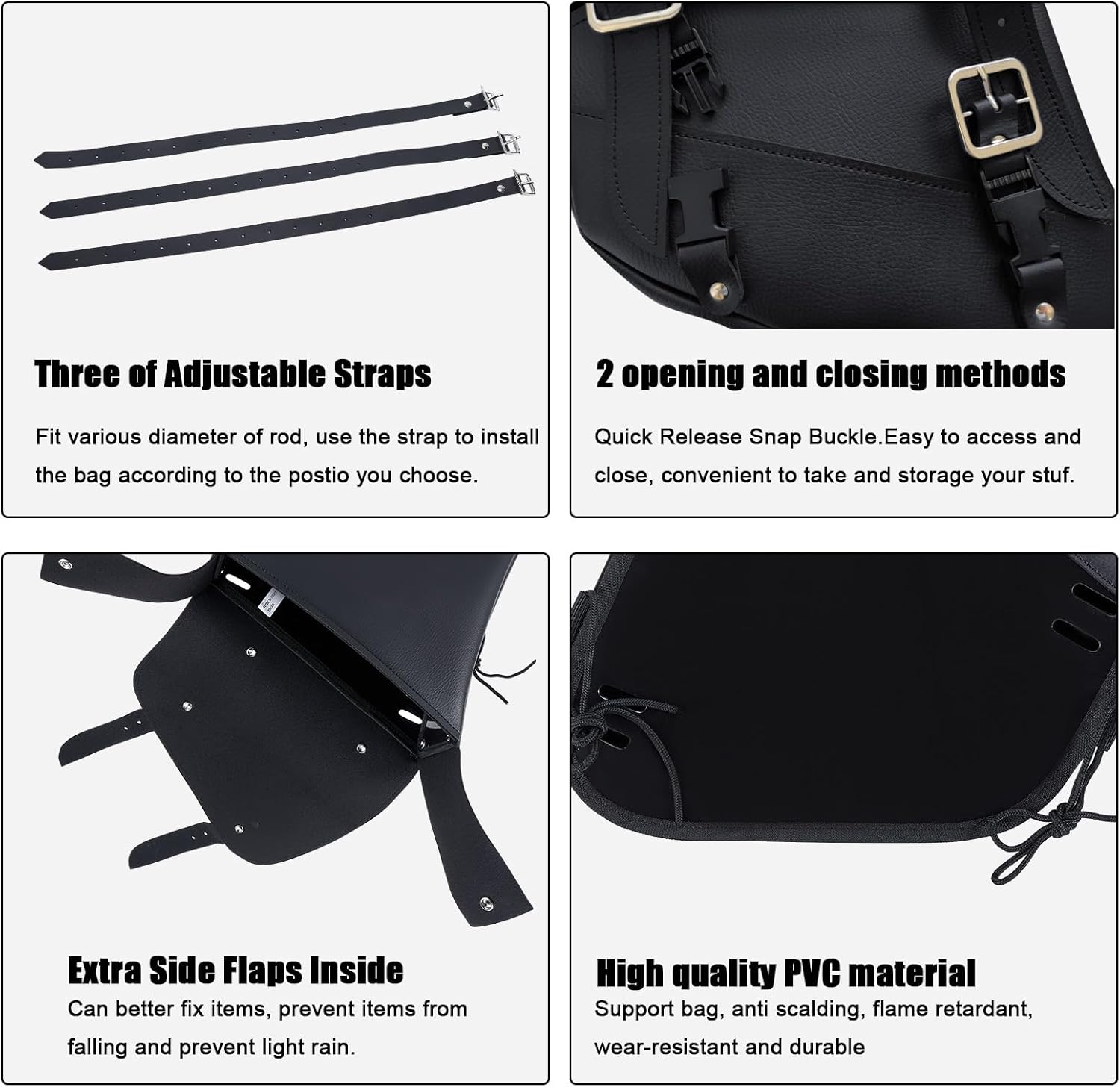 - Thoughtful & Functional Design - Inside, a hard sheet helps the bag hold its form, giving it a neat and organized look. The bottom is made of heat - resistant material, safeguarding the bag from the heat generated by the motorcycle. With two convenient opening and closing options - quick - release clips and concealed chrome roller buckles - accessing your items has never been easier.