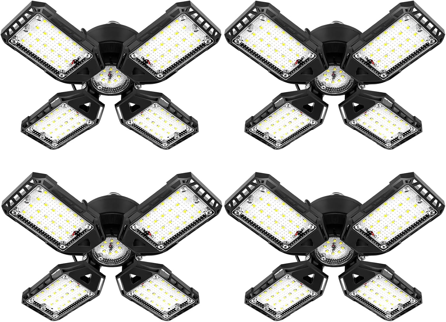 - 【4+1 Newest Garage Lights】With 4+1 deformable panels,the garage lights can be adjustable from 0 to 90 degree, which illuminate each corner of your garage in 360 full coverage without visual blind spots and dizziness. They will provide better light than 3, 4 and 5 panel garage lights on the market.