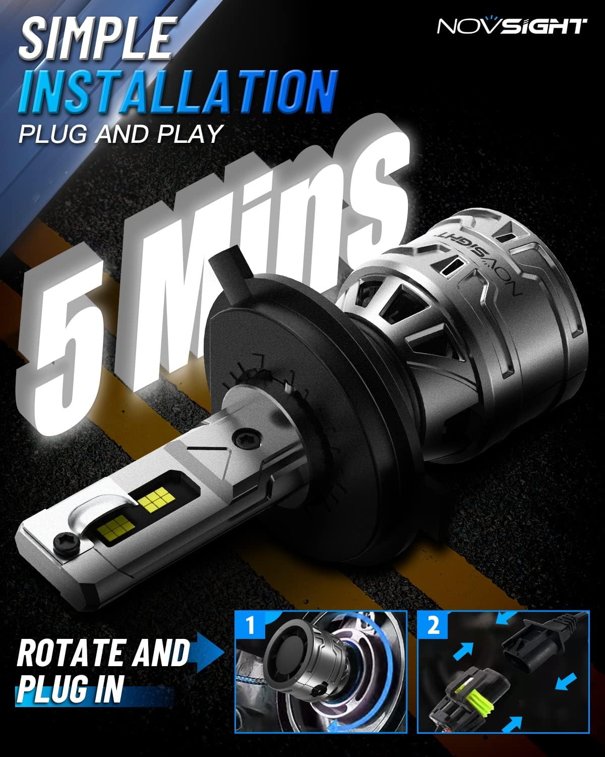 - Plug and Play in Minutes - Installation is a breeze! NOVSIGHT H4 bulbs are designed to fit perfectly into your housing and factory sockets without any modifications. Get them installed in just 5 minutes, saving you time and effort