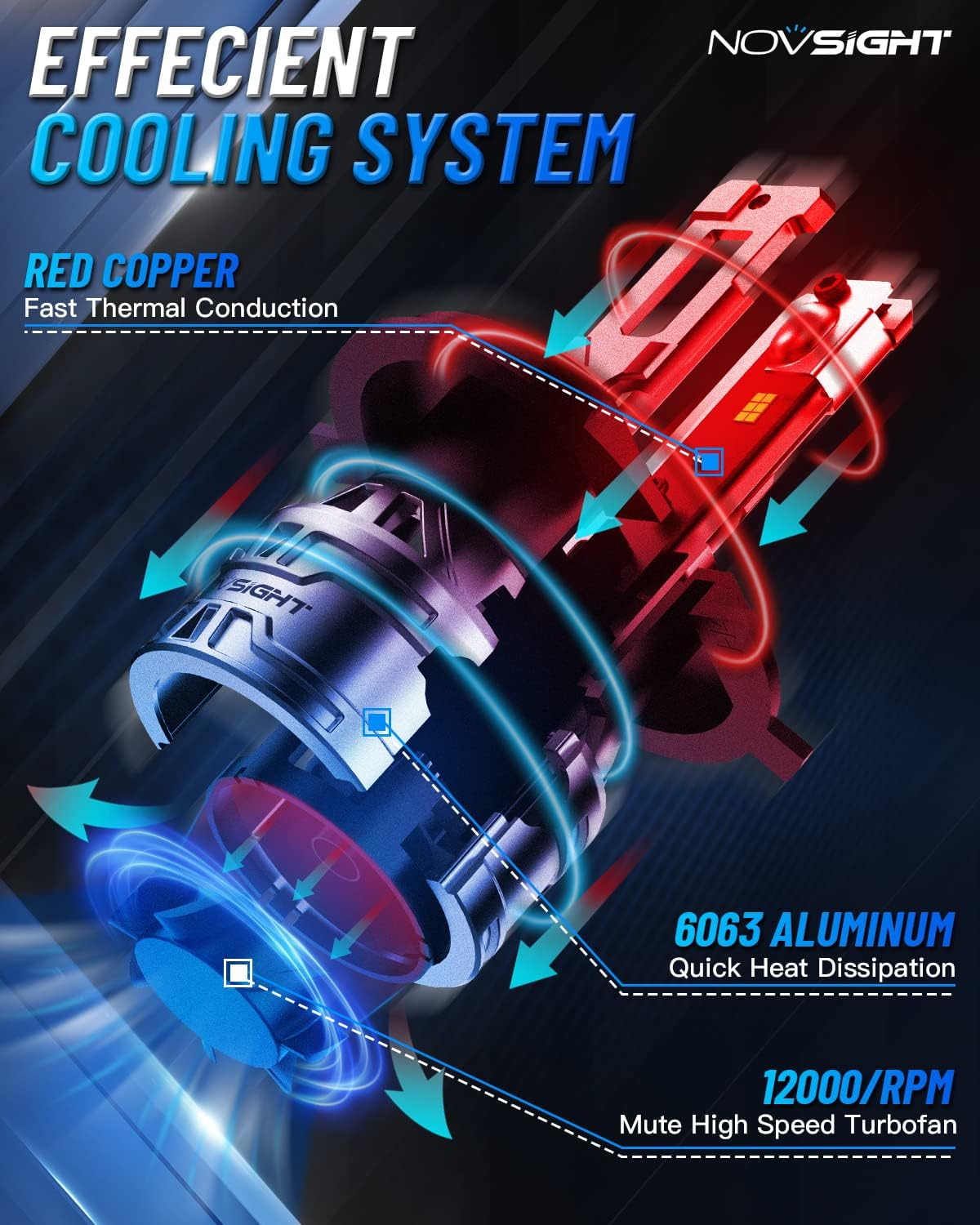 - No More Frequent Replacements - Enjoy long-lasting performance with built-in silent turbo fans and aviation-grade aluminum for optimal cooling. NOVSIGHT H4 fog bulbs boast an impressive lifespan of up to 100,000 hours—no more constant replacements
