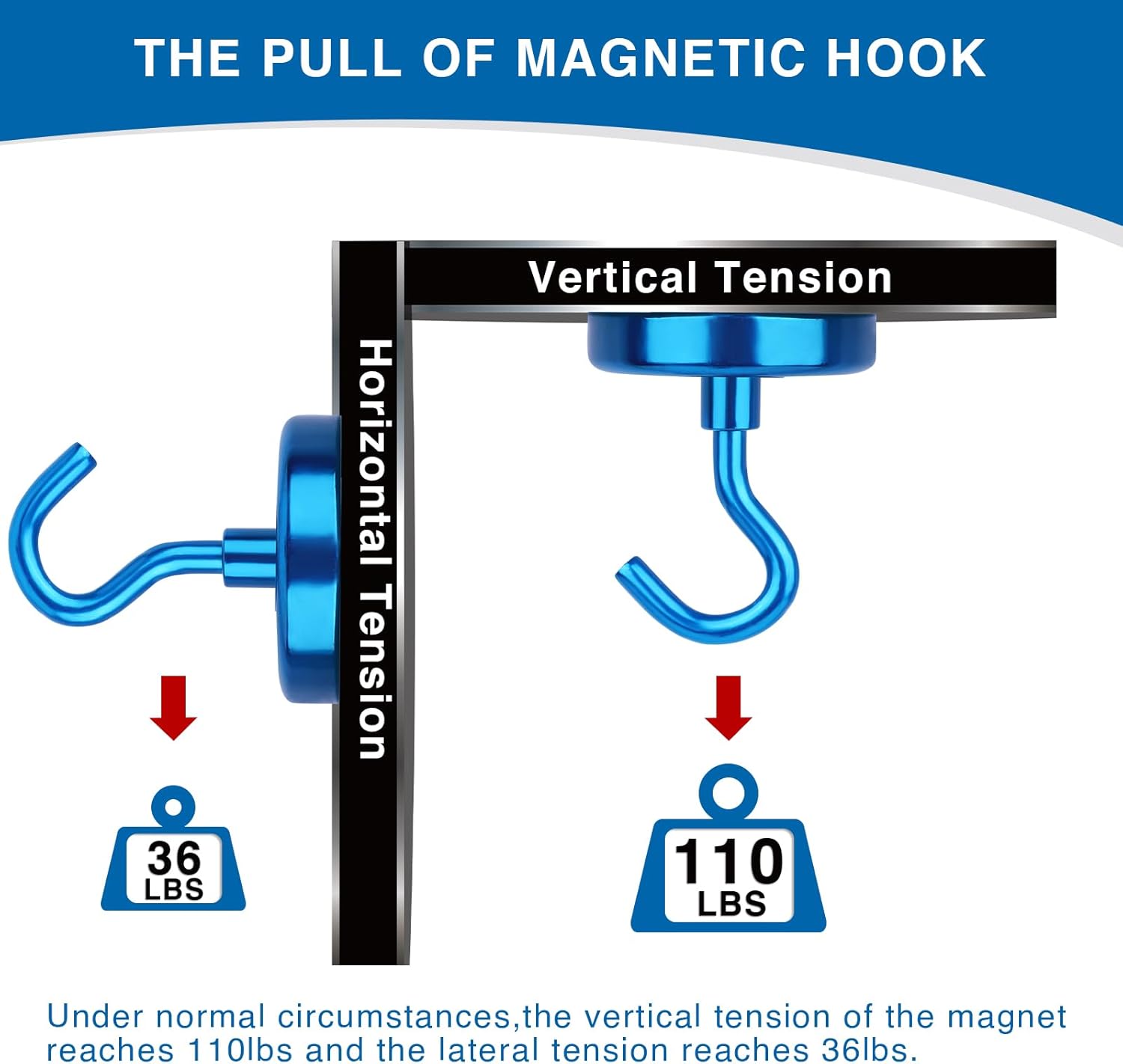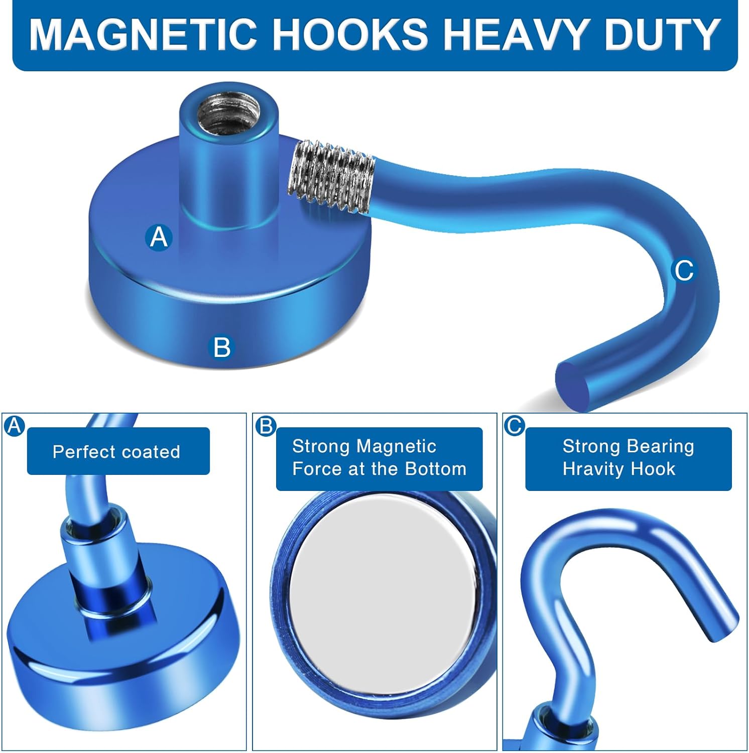 LOVIMAG Cruise Ship Essentials, 110Lbs Cruise Door Magnets, Blue Cruise Magnetic Hooks, Magnetic Hooks Heavy Duty for Hanging Celling, Grill, Refrigerator Kitchen-6 Pack