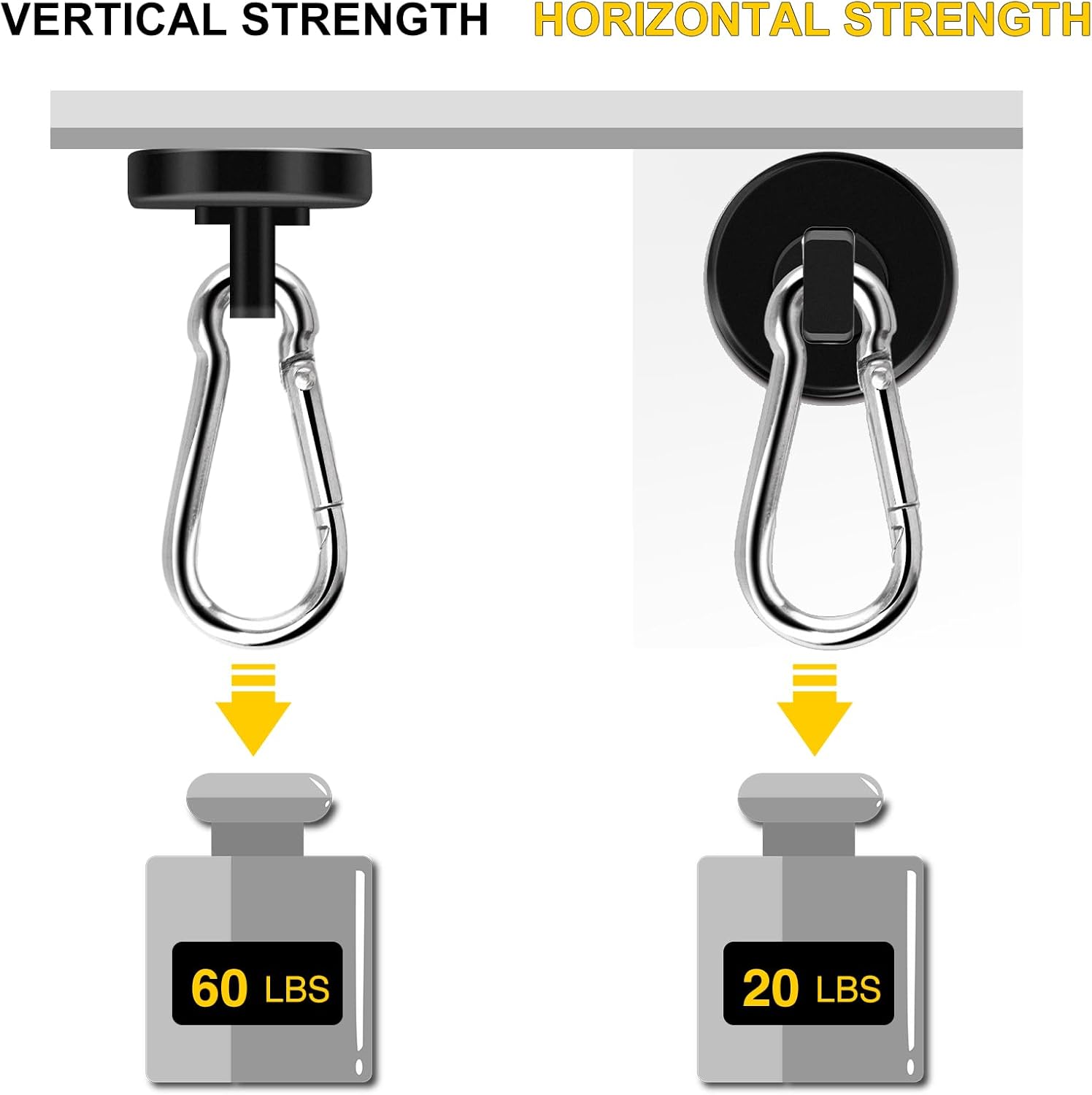 - POWERFUL MAGNET - The magnetic hooks are made of high-quality neodymium magnet, with strong magnetic force. It can reach 70lbs tension when suspended vertically and 25lbs tension when suspended horizontally
