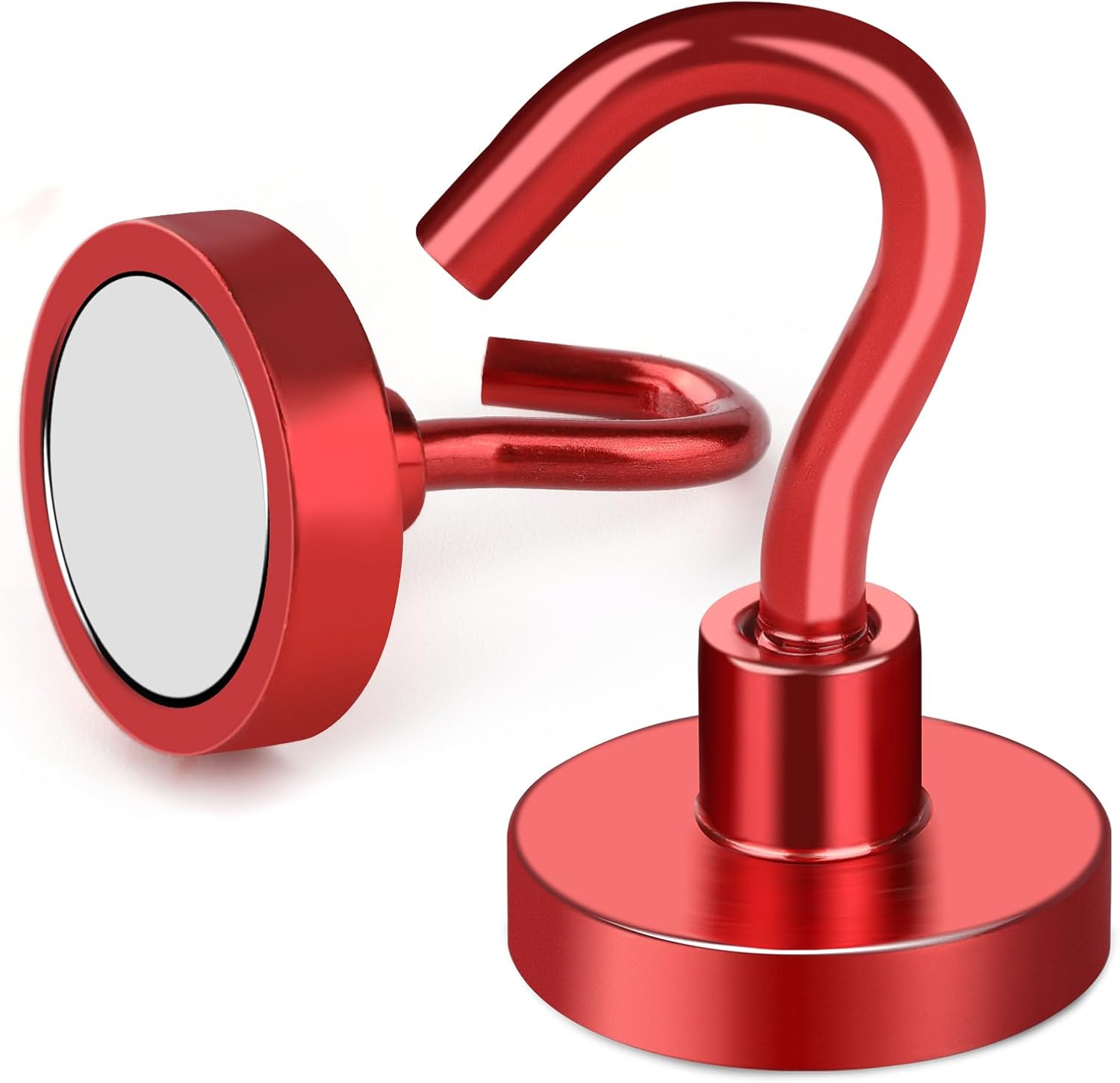 MIKEDE Magnetic Hooks Heavy Duty, 28LB+ Strong Magnets with Hook for Fridge, Neodymium Extra Strength Industrial Hooks for Hanging, Magnetic Hanger for Toolbox, Cruise, Grill(Red,4 Pack)