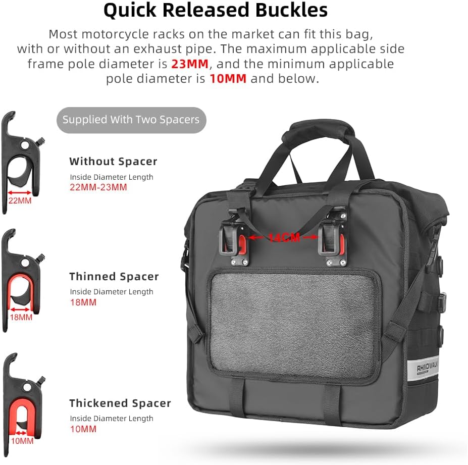 Rhinowalk Motorcycle Saddle Bag Waterproof Motor Pannier Bag Luggage Pack Quick Release Motorbike Side Bag 25L (Black)