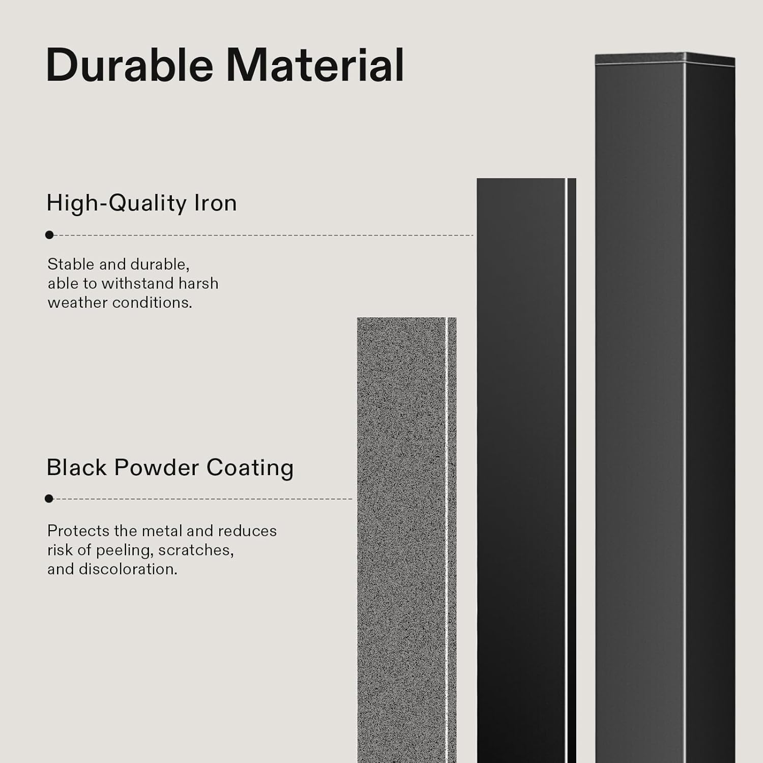 - Sturdy & Durable: Made of high-quality iron for stability and durability, this handrail is capable of withstanding harsh outdoor conditions, including rain and snow; Thick black powder coating reduces chance of peeling off, rust, scratches, and discoloration, also making the railing easy to maintain and clean