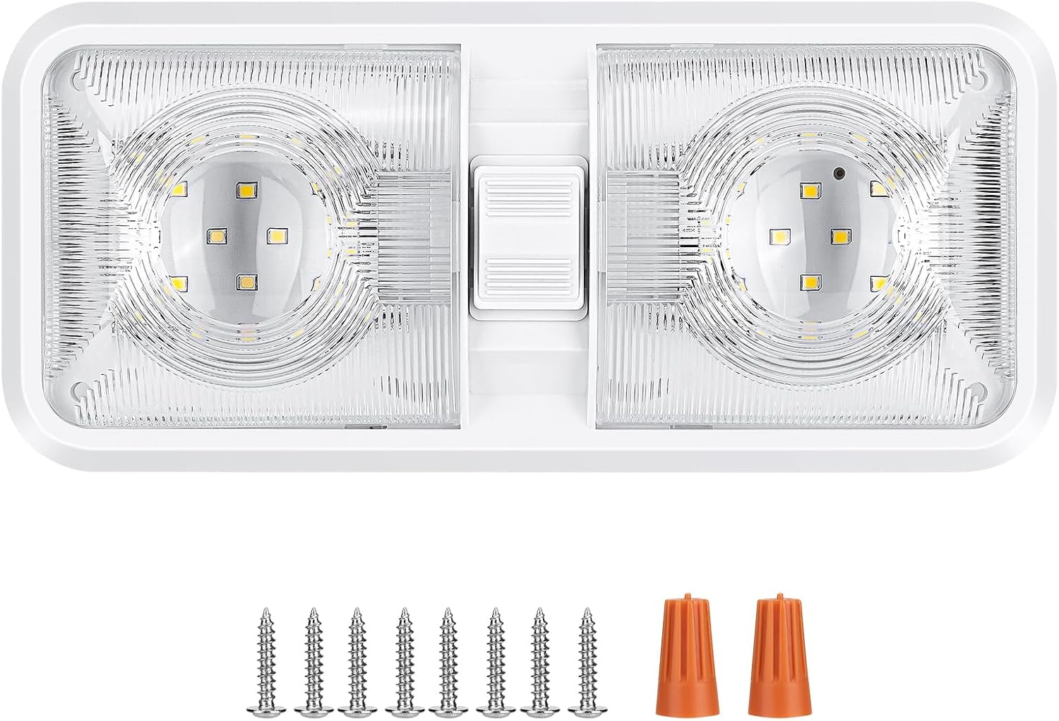 1 Pack RV Lights Interior 12V Led 8W Ceiling Double Dome Camper Light 600 Lumen Brightness Light Fixture for RV Camper Trailer Boat Car, Natural White 4000-4500K, 48 X 2835 SMD LED
