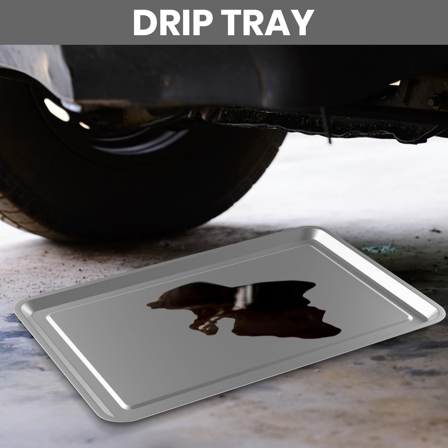 - RELIABLE AND STRONG MATERIAL: This automotive oil drain pan is made of high quality 403 stainless steel, not easy to break or deform, large enough to prevent oil from dripping onto the floor during maintenance, preventing damage to the floor, and is also suitable for oil changes, draining water and more. It is a reliable choice for car enthusiasts.