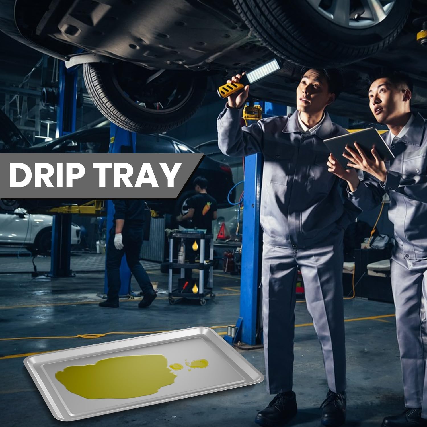 - QUANTITY & SIZE: 2 Piece Oil Change Drip Tray, 23.5 x 15.6 Inch, it is designed to fit most car models, effectively preventing oil drips from contaminating the ground.