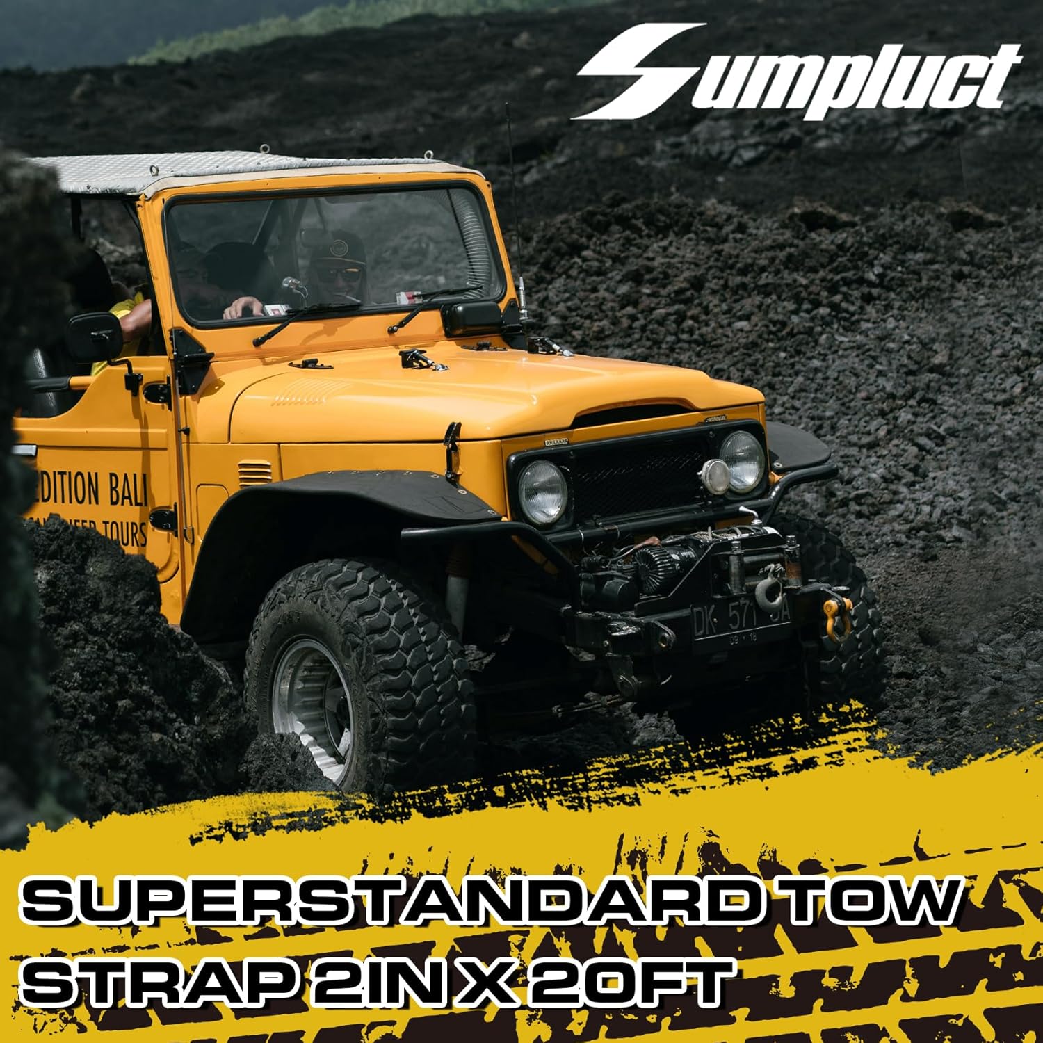 Recovery Tow Strap 2in X 20ft Exceed Heavy Duty 25,000 lbs Break Strength, Use for Emergency Towing Rope, Tree Saver, Winch Extension, Triple Reinforced Loops,Car Accessories