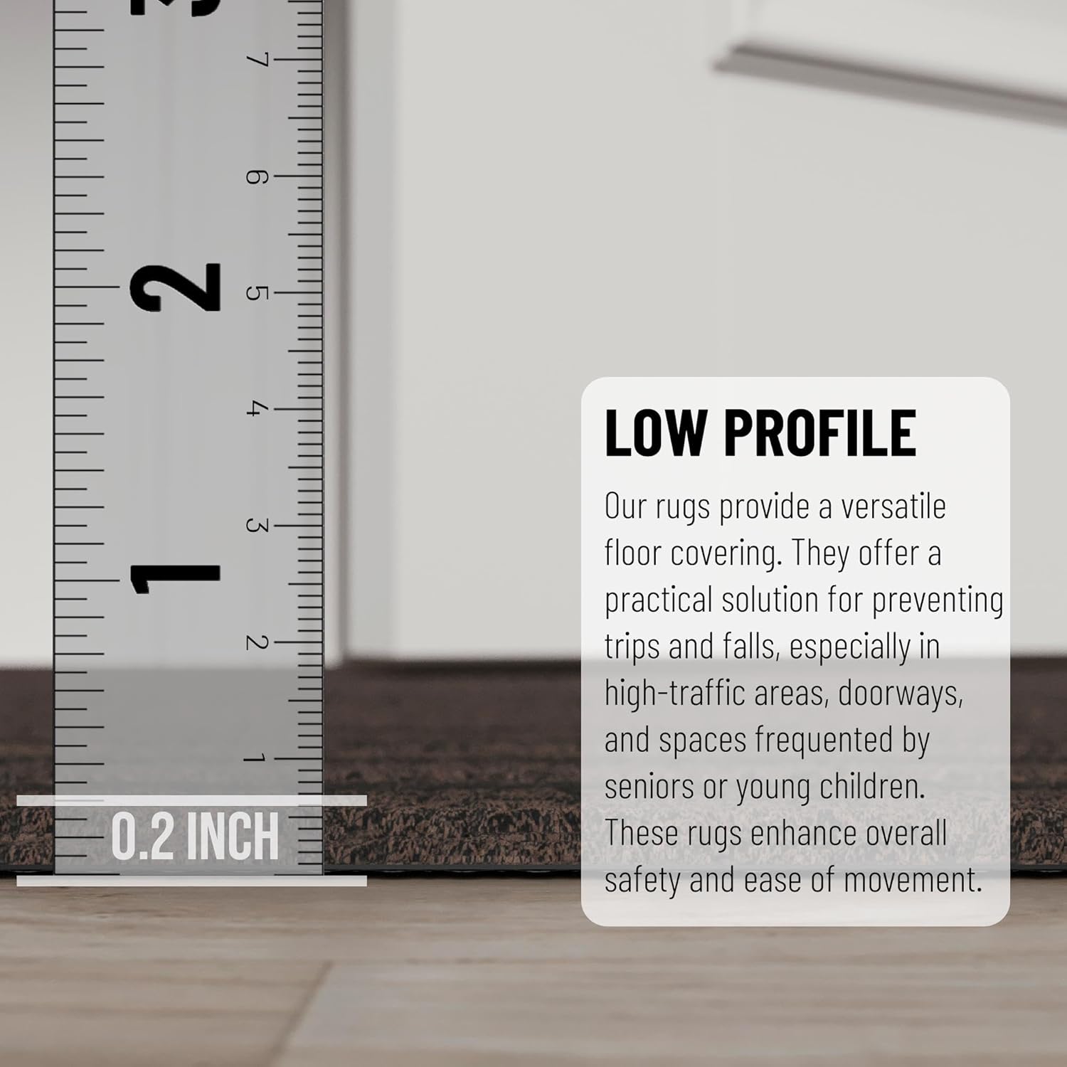 - [ULTRA THIN PILE]: An ultra thin pile thickness of 0.2 inches offers ideal functionality that is perfect for busy areas, underneath furniture, and in entryways as it will not obstruct doorways.