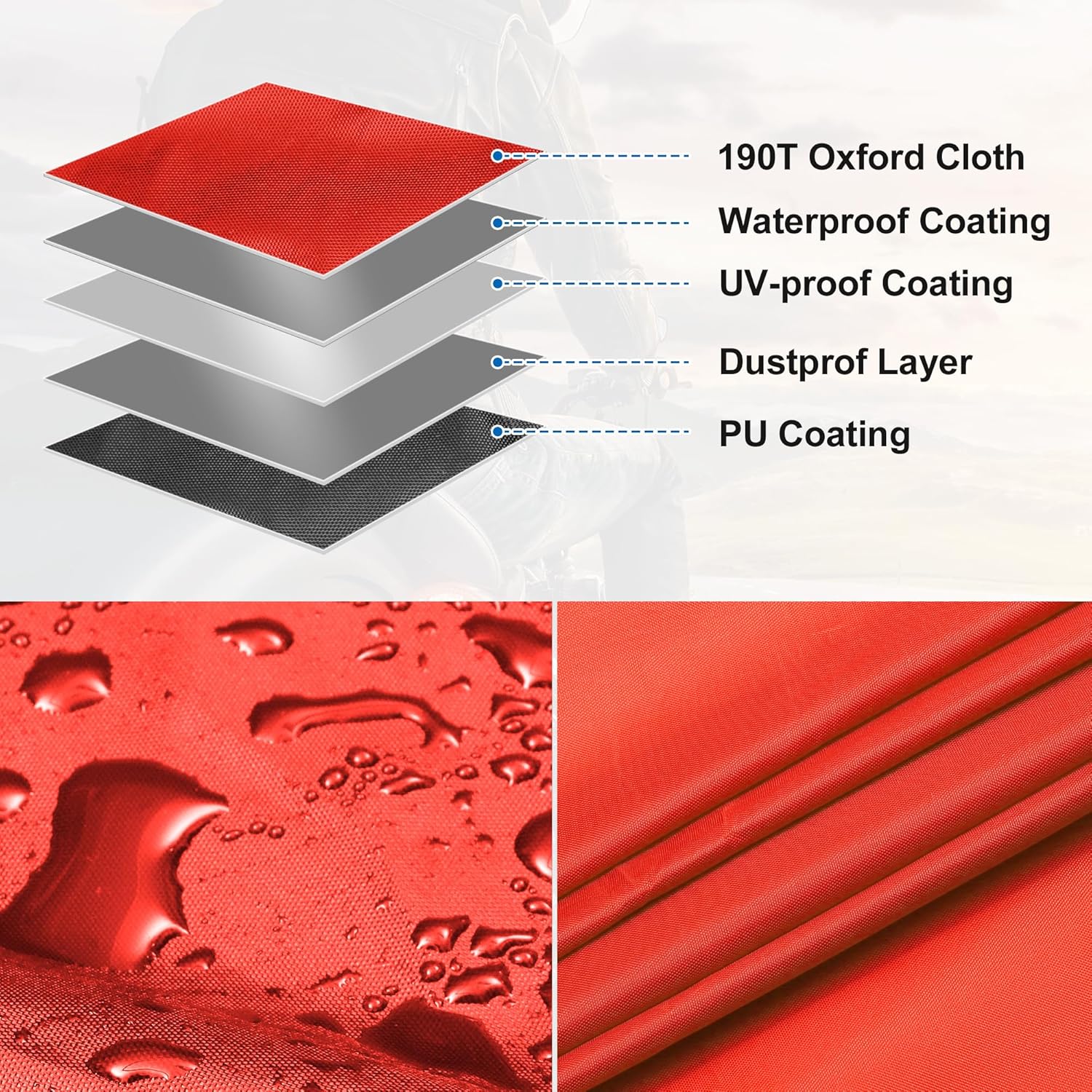 X AUTOHAUX Motorcycle Cover for Harley Davidson for Honda for Suzuki All Season Waterproof Sun Outdoor Protection Motorbike Cover Fits Up to 96.46'' Motorcycles Cover XL Red Silver Tone