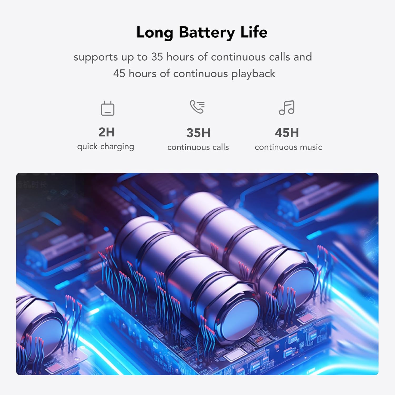 - Easy Controls & Long Battery Life: Experience convenience at your fingertips with the headset's intuitive controls. The Multi-Function Button (MFB) and dedicated mute button provide hands-free call management without reaching for your device. Revel in extended usage with up to 35 hours of continuous calls and 45 hours of music playback on a single charge.