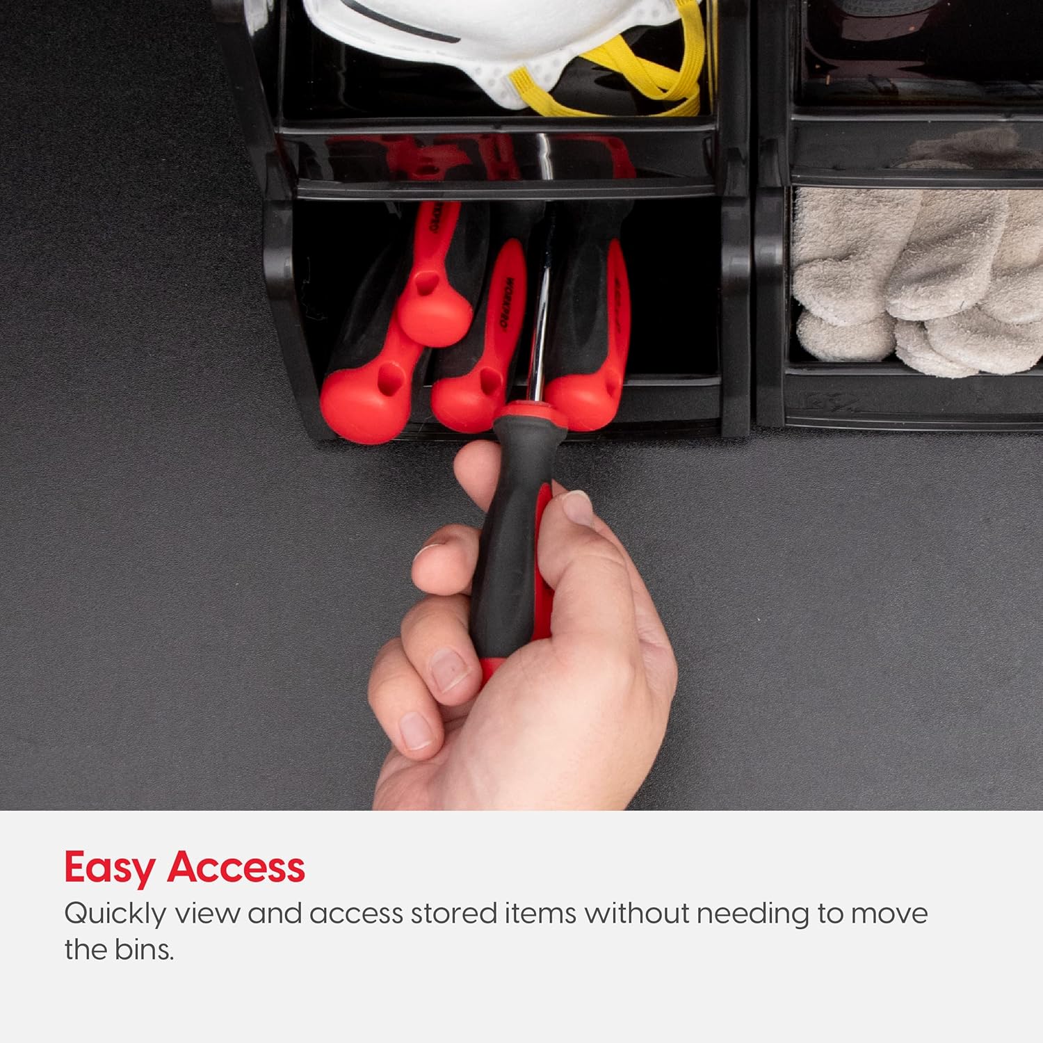 - STACKABLE - Stackable storage bins allow efficient organization, maximizing vertical space in your workshop, garage, or craft room. Keep tools and parts neatly stored while saving room with this space-saving design.