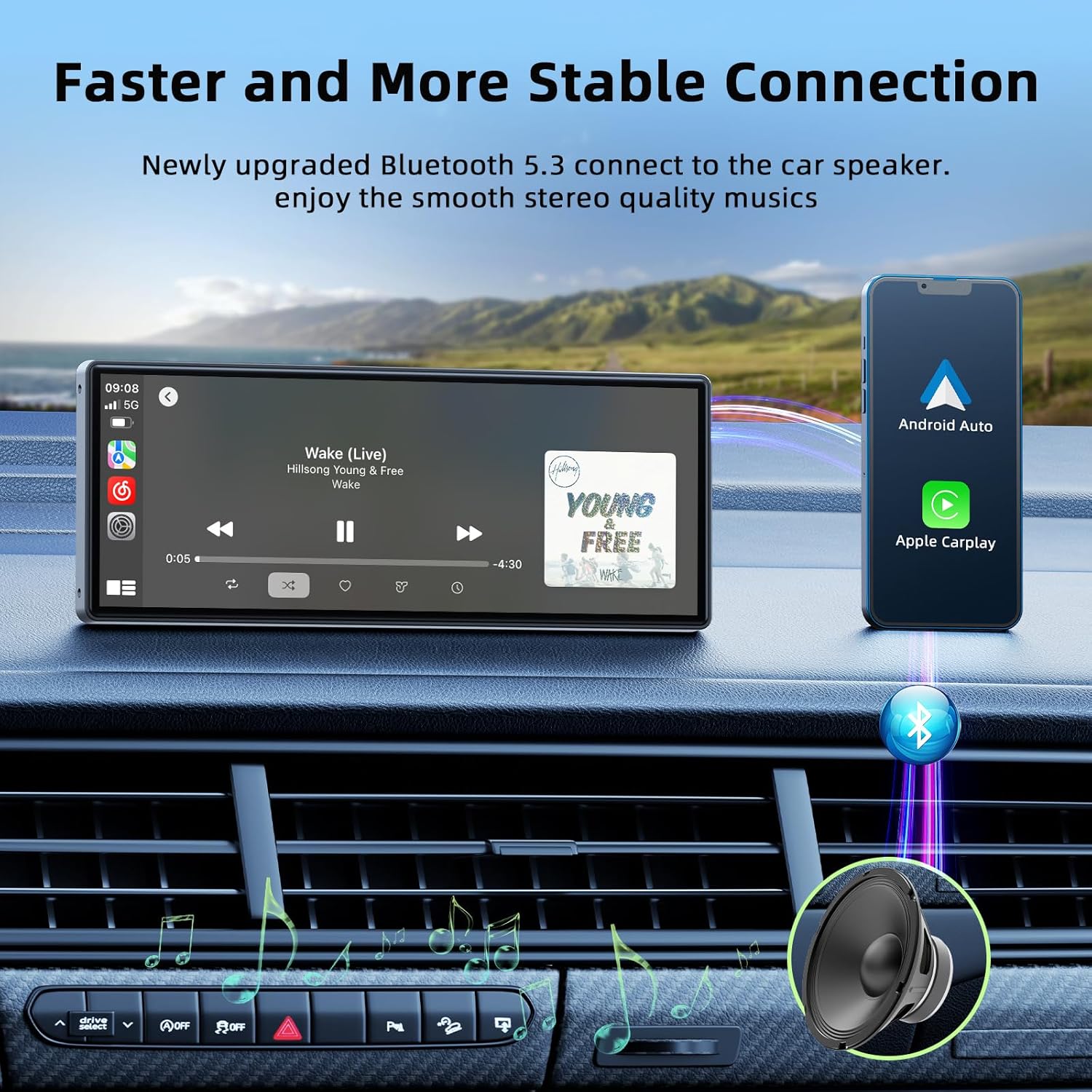 LAMTTO 9.26-inch Wireless CarPlay Screen for Car Compatable with Apple CarPlay& Android Auto,Portable Car Stereo with GPS Navigation,Bluetooth,Mirror Link,Drive Play,Touch Screen for All Vehicles