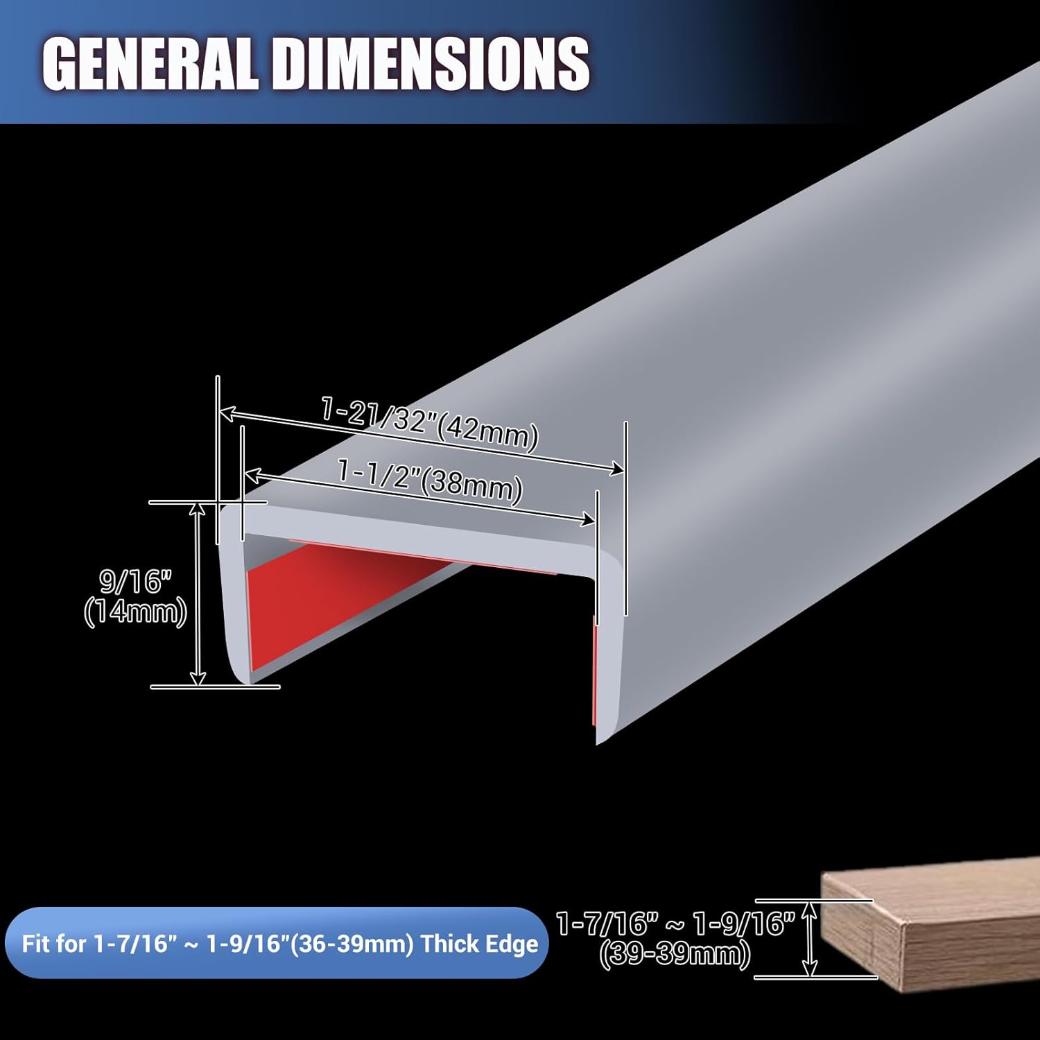 Rubber Edge Trim, Flexible Self Adhesive U Shaped Peel and Stick Edge Banding, 1-1/2"(38mm) U Channel Edge Protector, Edge Guards for Woods, Furniture, 20Ft, Grey Color