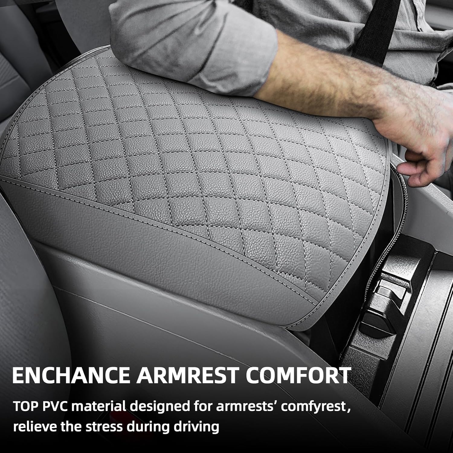 - 【Enhanced Comfort and Stability】The Center console lid provides superior comfort with its soft PVC leather surface, reducing pressure on your elbow during long drives. The non-slip design ensures it stays firmly in place, even during sudden stops or sharp turns