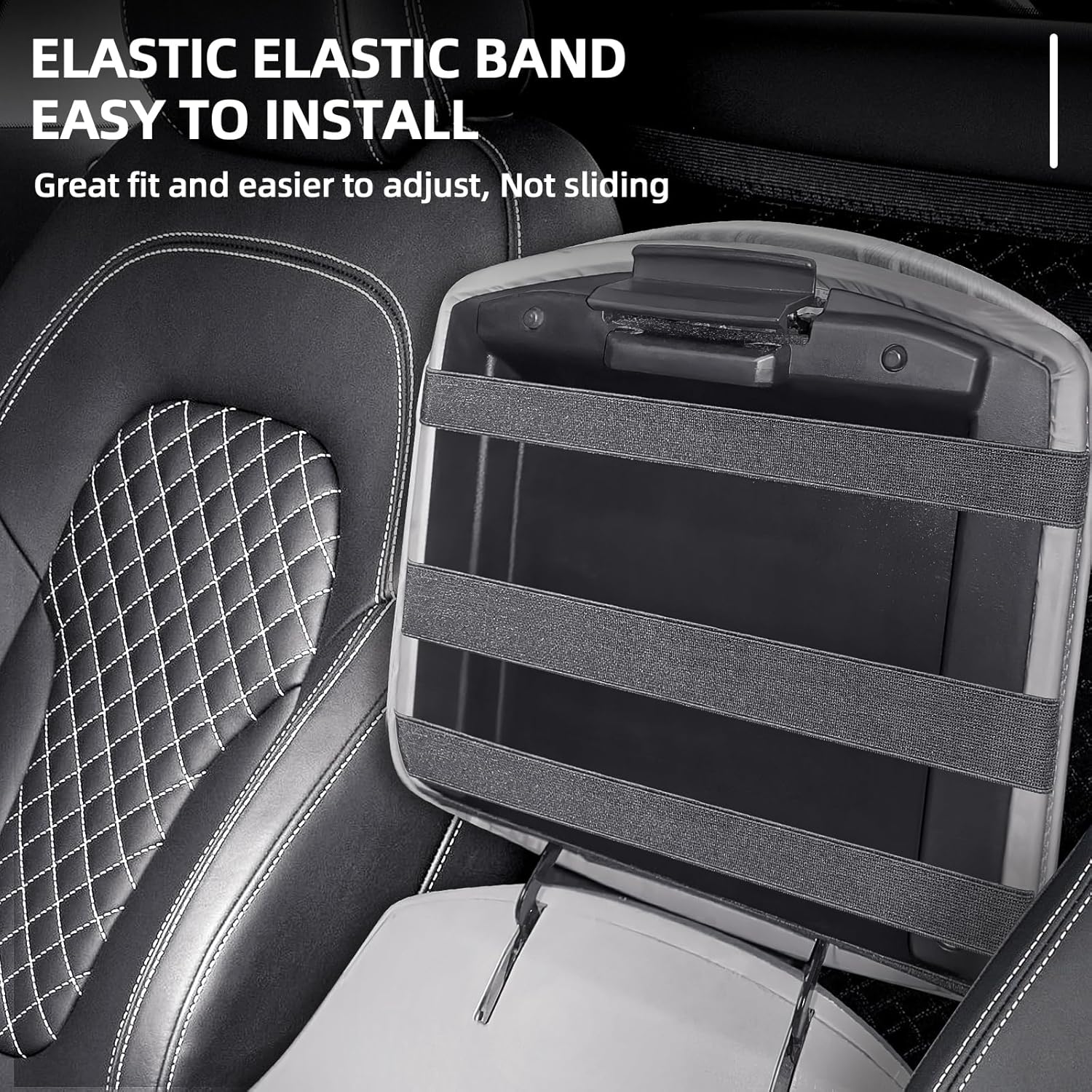 - 【Easy Installation 】Installing the center console cover is easy and requires no tools. Simply place Leather Armrest lid Cover over your existing armrest and secure it with the elastic bands without removing the original cover