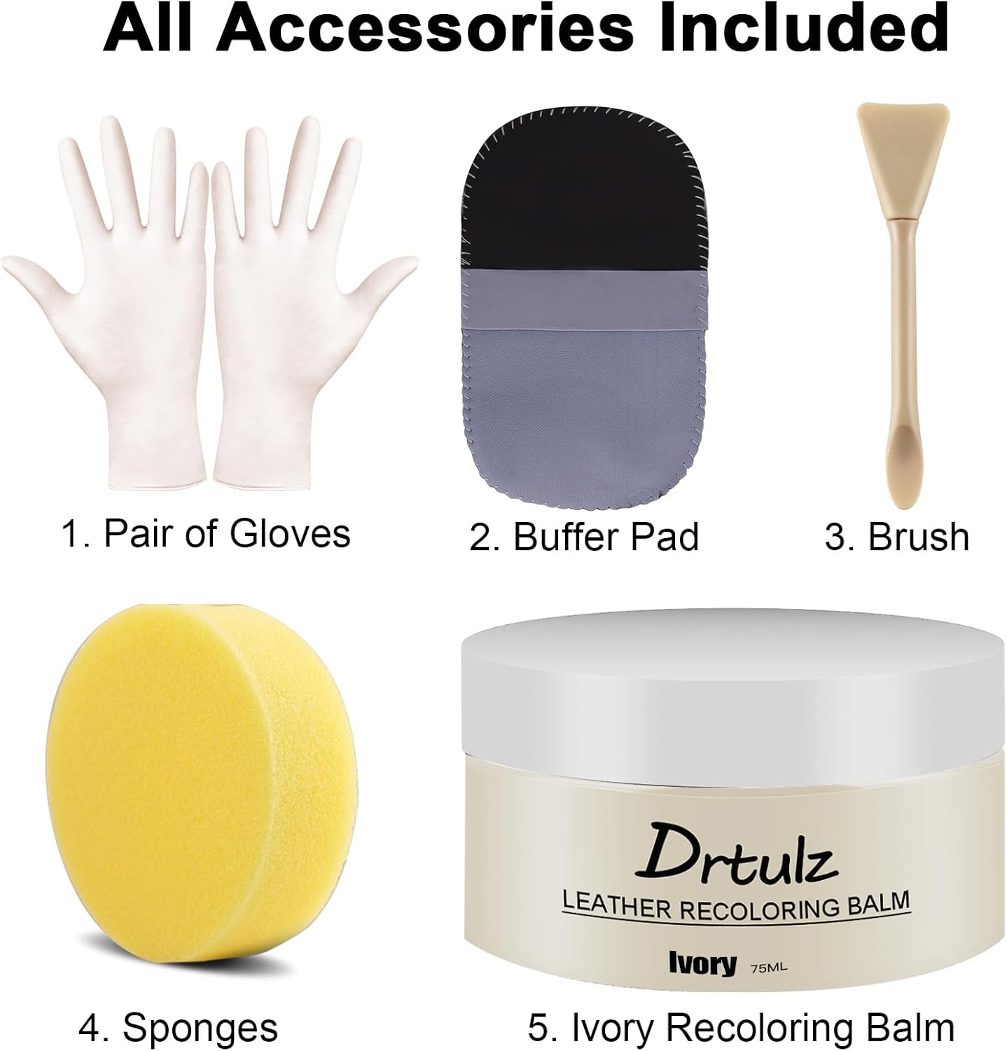 - [ Leather Steering Wheel Repair Kit] Package Includes, 1 Black Recoloring Balm + 1 Sponges + 2 Gloves + 1 Buffer Pad + 1 Silicone brush