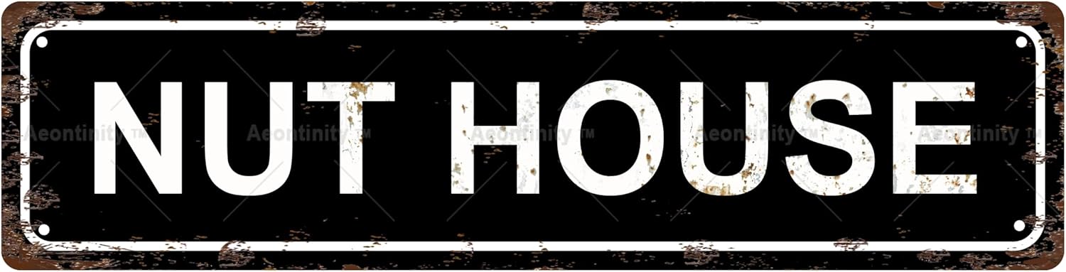 NUT HOUSE Non-Embossed Vintage Metal Tin Street Sign Bar Cafe Garage Cave Home Room Wall Bathroom Farmhouse Garden Porch Patio Decor, 16 x 4 Inch
