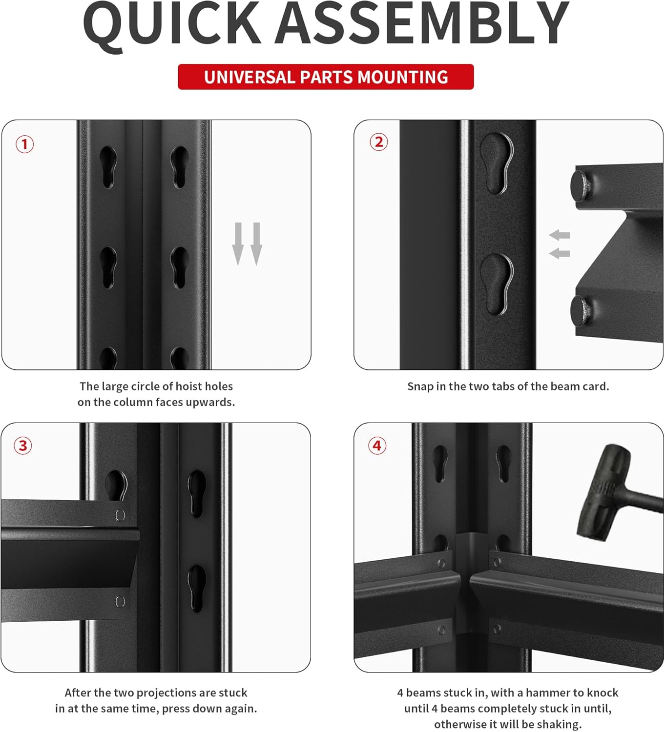 - 🍖【Easy Assembly】This shelving unit is designed for quick and hassle-free assembly. With clear instructions and all necessary hardware included, you can have your metal shelf set up in no time, saving you time and effort.