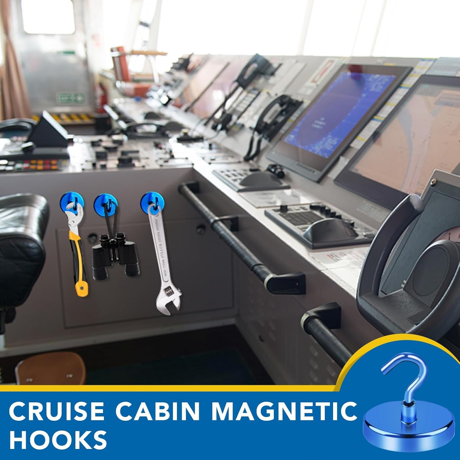 - 【HIGH QUALITY COATING】 Magnetic hooks for cruise are coated with three layers of Ni+Cu+Ni, which provides a shiny and rust resistant coated steel cup provides protection for the magnet and helps to prevent chipping or cracking. The magnetic hook the addition of an iron shell, the suction of strong magnetic hook is several times that of an ordinary magnet. It is neodymium magnetic hook. Heavy metal magnetic hook, strong magnetism forever!