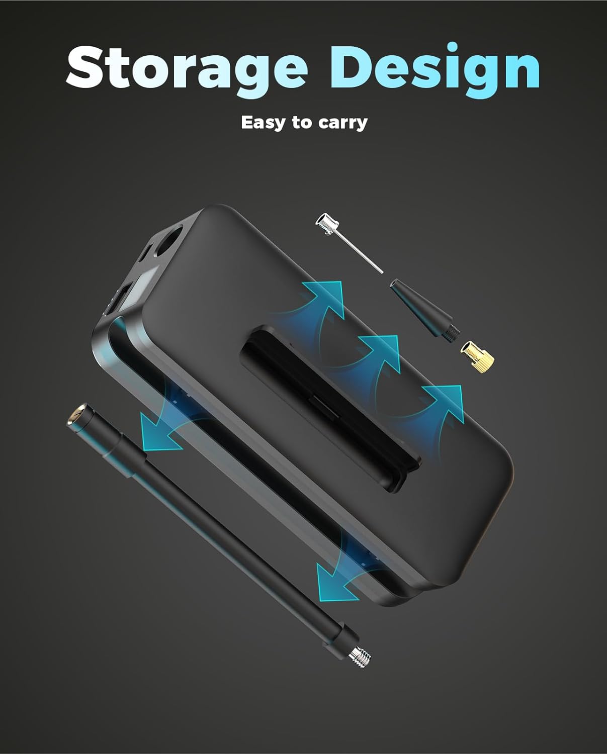 - Ride with Ease: The electric bike pump weighs just 1 pound, offering ultimate portability for cycling trips. Our Portable Tire Inflator features a built-in air hose and nozzle valve storage slot. Simply carry the T3S to handle all your inflation needs