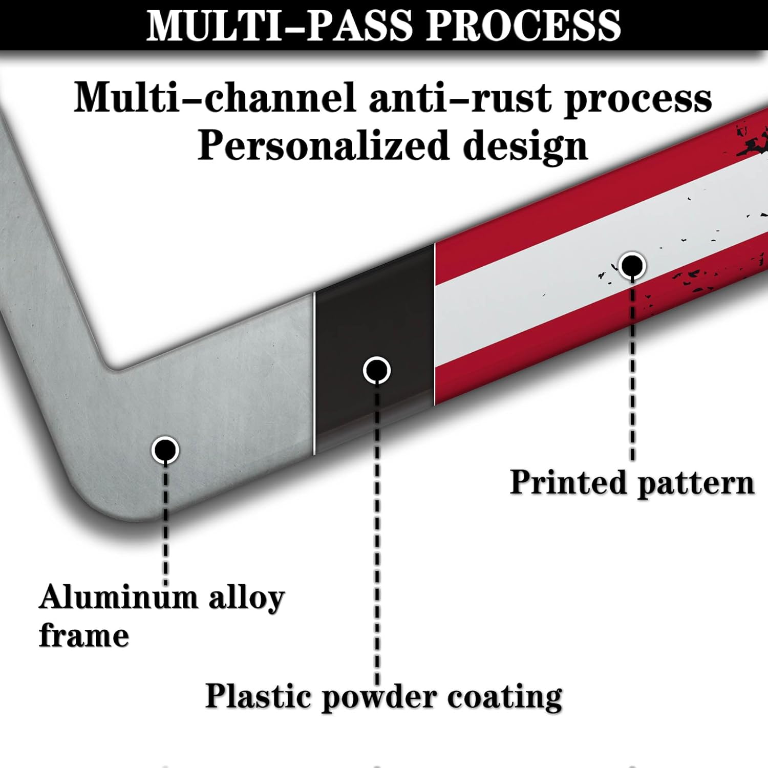 License Plate Cover Multicolor License Plate Frames Patriotic USA American Flag Aluminum Metal Car Accessory 2 Pack with Screw Covers Set