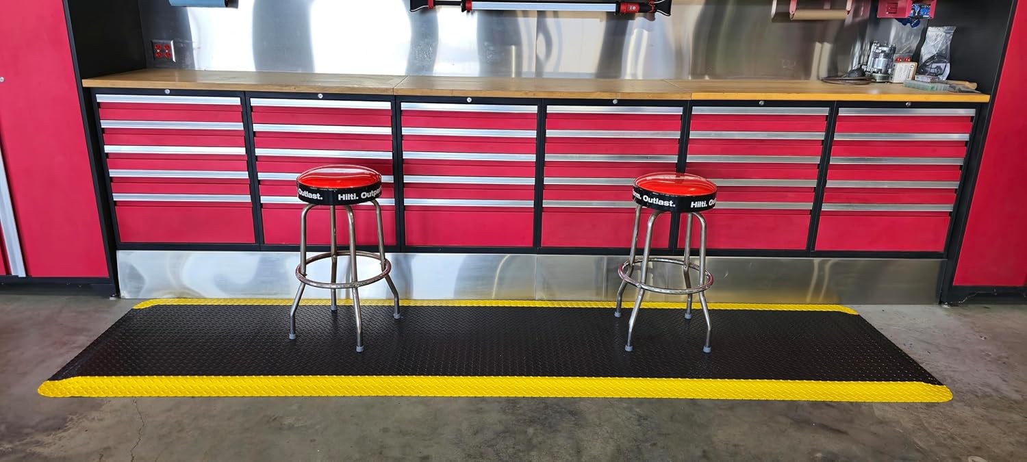 Rhino Mats, American Classic Diamond Anti-Fatigue Mats, Industrial Ergonomic Comfort Standing Mat for Work, Home, Garage, Office, Kitchen or Anywhere (Black/Yellow 9/16" Thick, 3 FT. x 24 FT.)