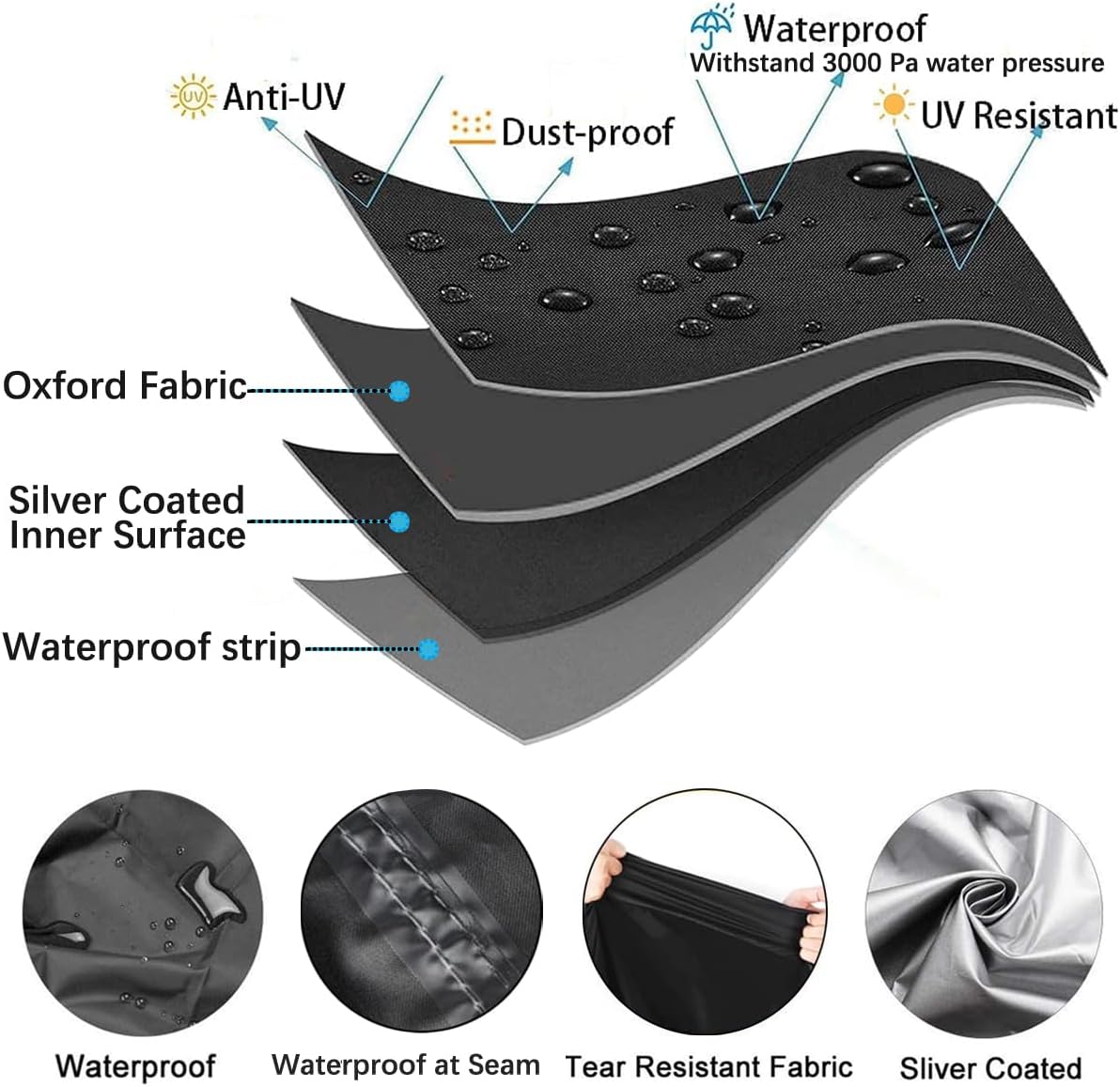 - 【Double-stitched and Waterproof Strip】 The seams are all designed with double-stitched reinforced stitching for tear resistance and durability. Besides, the bottom of the seams are designed with waterproof strips to ensure the cover better waterproof, no water seepage.