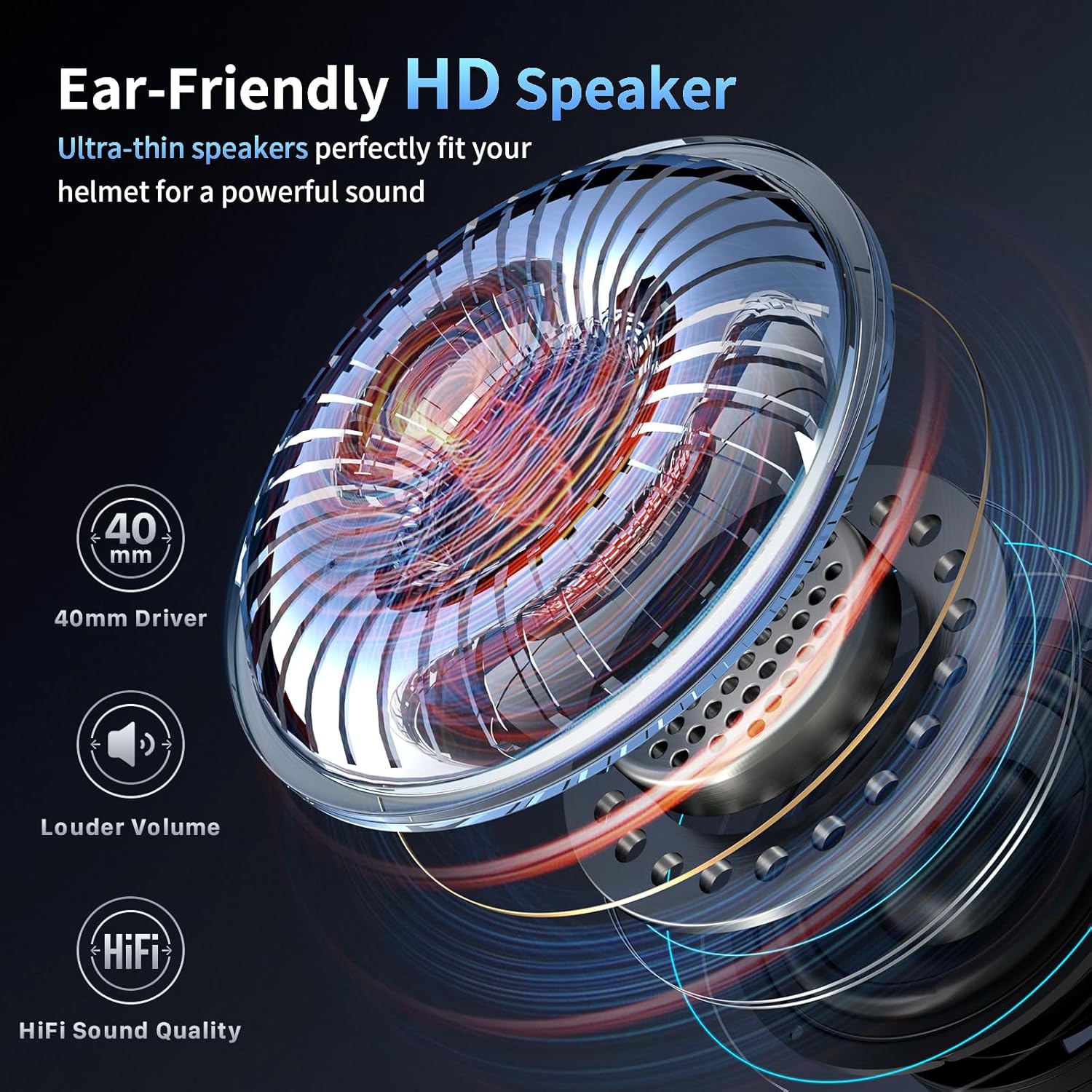 - Superior Sound Quality, HD Speakers: FX-S Bluetooth motorcycle headset is paired with Hi-Fi motorcycle speaker(Width: 40mm, Height: 9mm) that delivers every audio detail clearly and vividly, providing the most superior sound quality in any environment. It also fits perfectly into your helmet without putting any strain on your ears