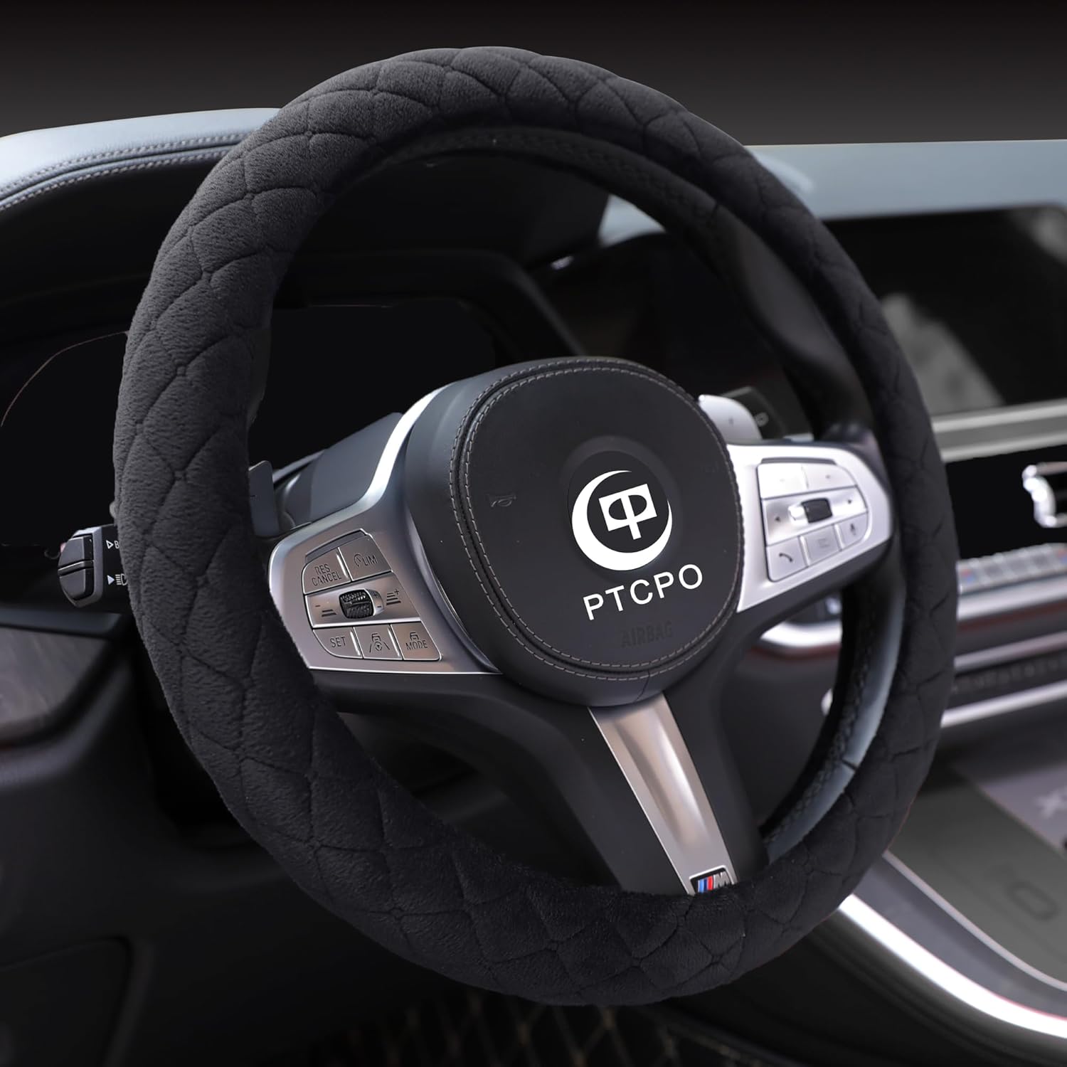 Soft Car Steering Wheel Cover for Sedan, SUV, Warm Luxury Velvet, Odorless, Universal, Anti Slip, Summer Winter, Black, Standard Size[14" 1/2-15"](37-38cm)