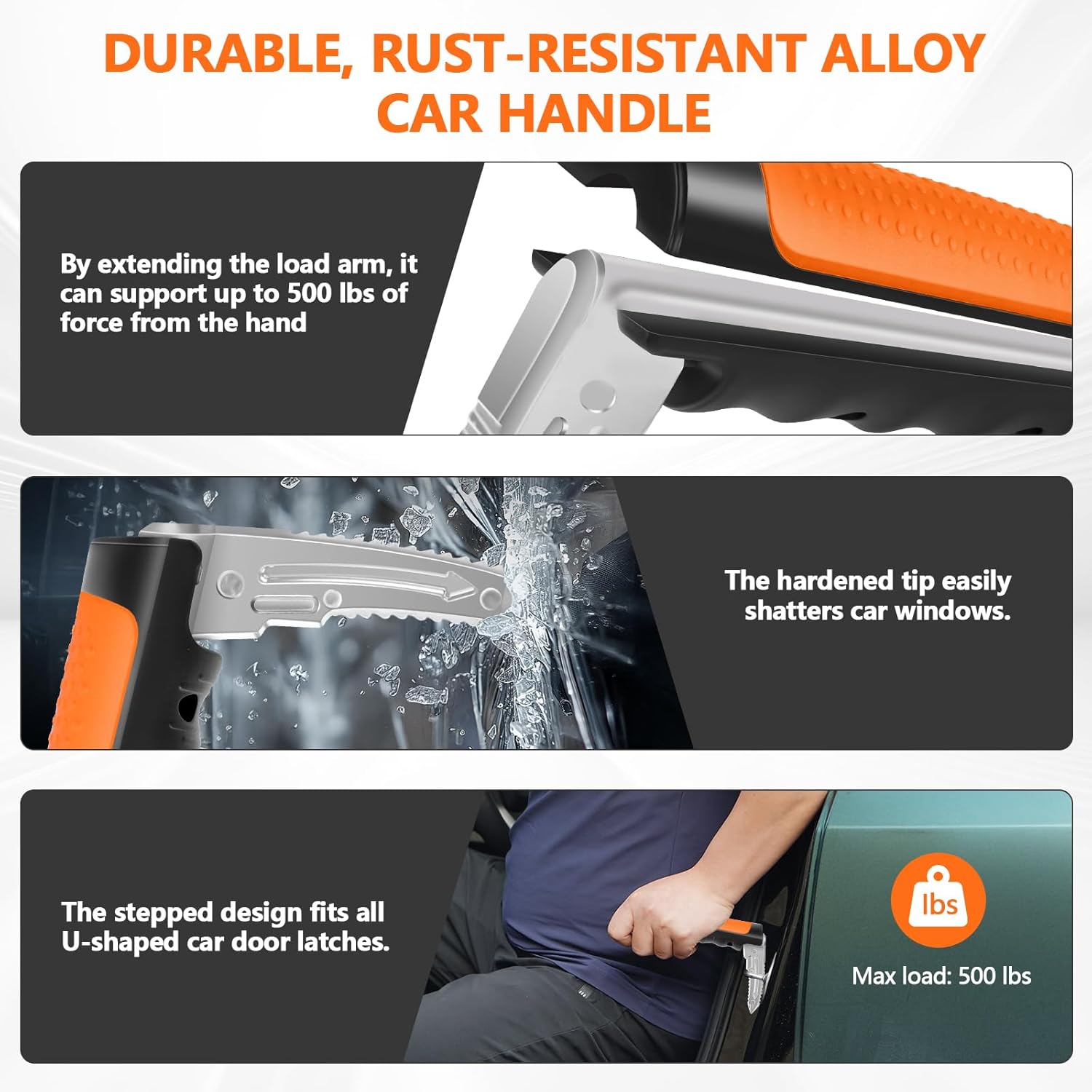 - 【3 In 1 Car Door Handle】1-pack car door handles combine a window breaker, seatbelt cutter, and car handle, making them ideal for children, pregnant women, individuals with Parkinson’s, the disabled, or anyone needing assistance with independent mobility.