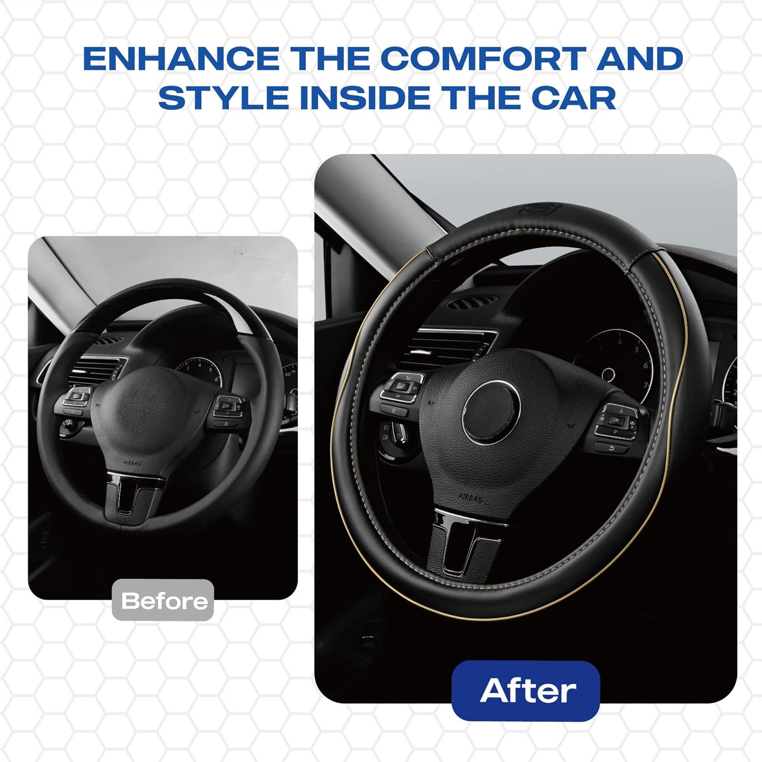 - EASY INSTALLATION-Skechers car steering wheel cover is easy to install with 3 steps. Just cover the steering wheel with the product from the top, pull it to cover the whole steering wheel, and adjust the product to snugly fit on the steering wheel.