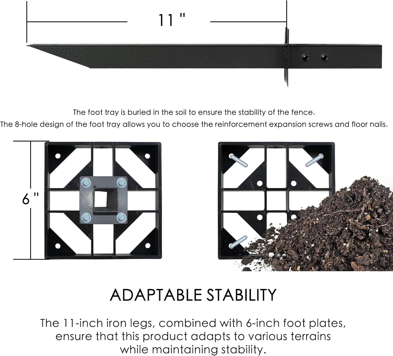- š” Adaptable Stability: The 11-inch iron legs, combined with 6-inch foot plates, ensure that this product adapts to various terrains while maintaining stability. The foot tray can be buried in the soil for added stability.