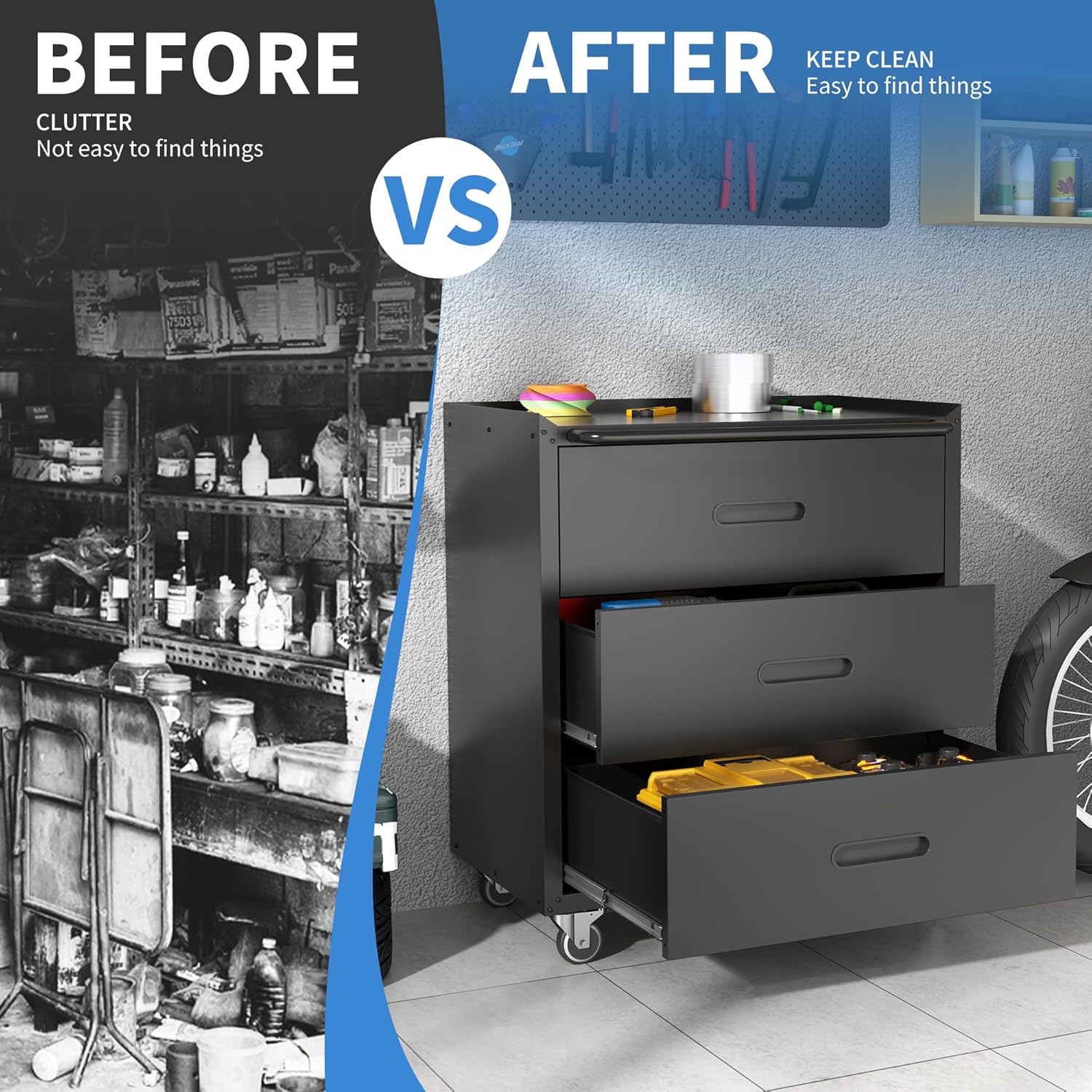 - STURDY & DURABLE: This storage cabinet with wheels is made of high-quality steel plate which is processed and assembled to be strong and stable, with high load-bearing capacity, suitable for storing heavy tools and equipment. Meanwhile, the cabinet is made with anti-rust process to ensure that it will not rust for a long time.
