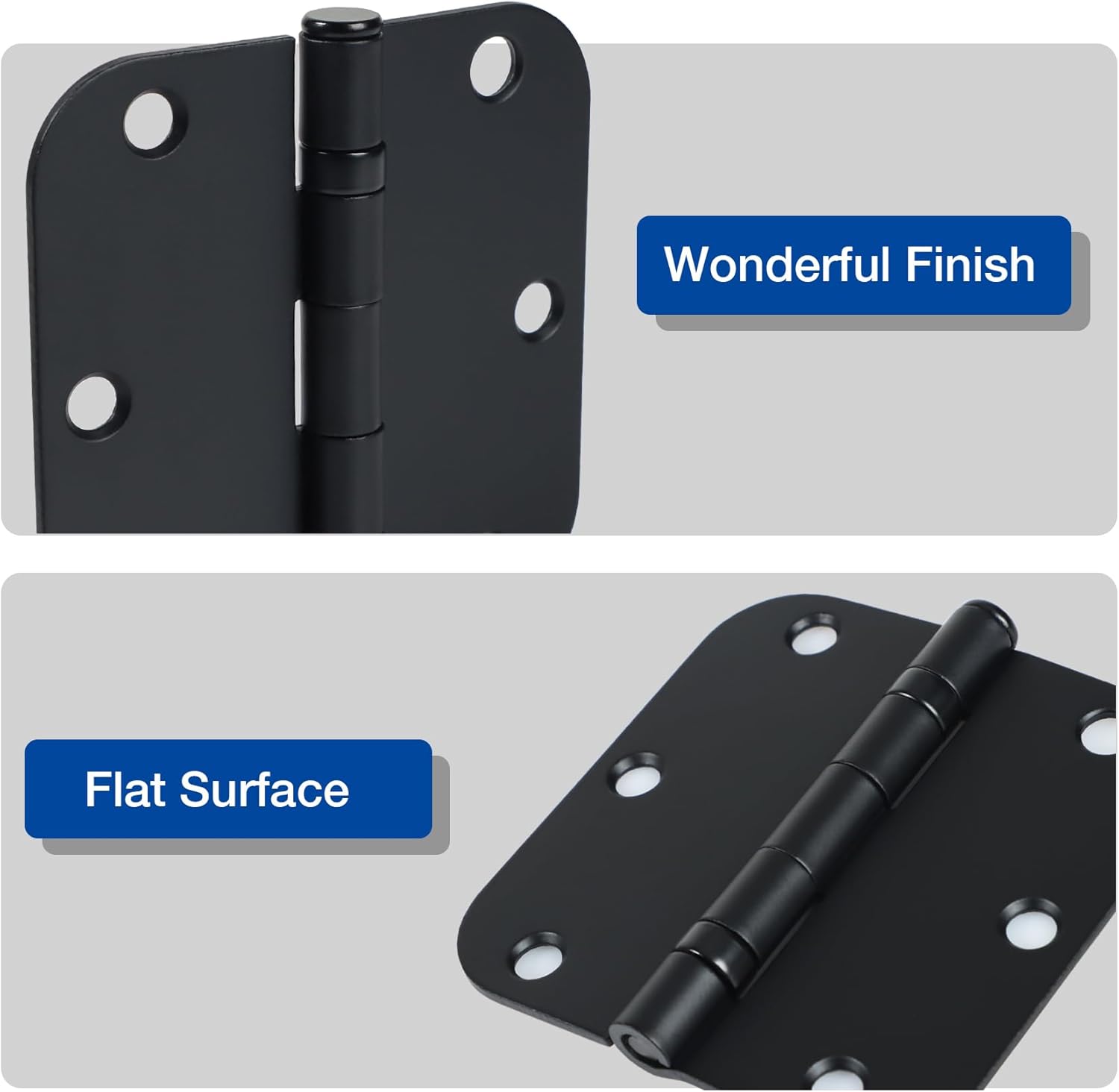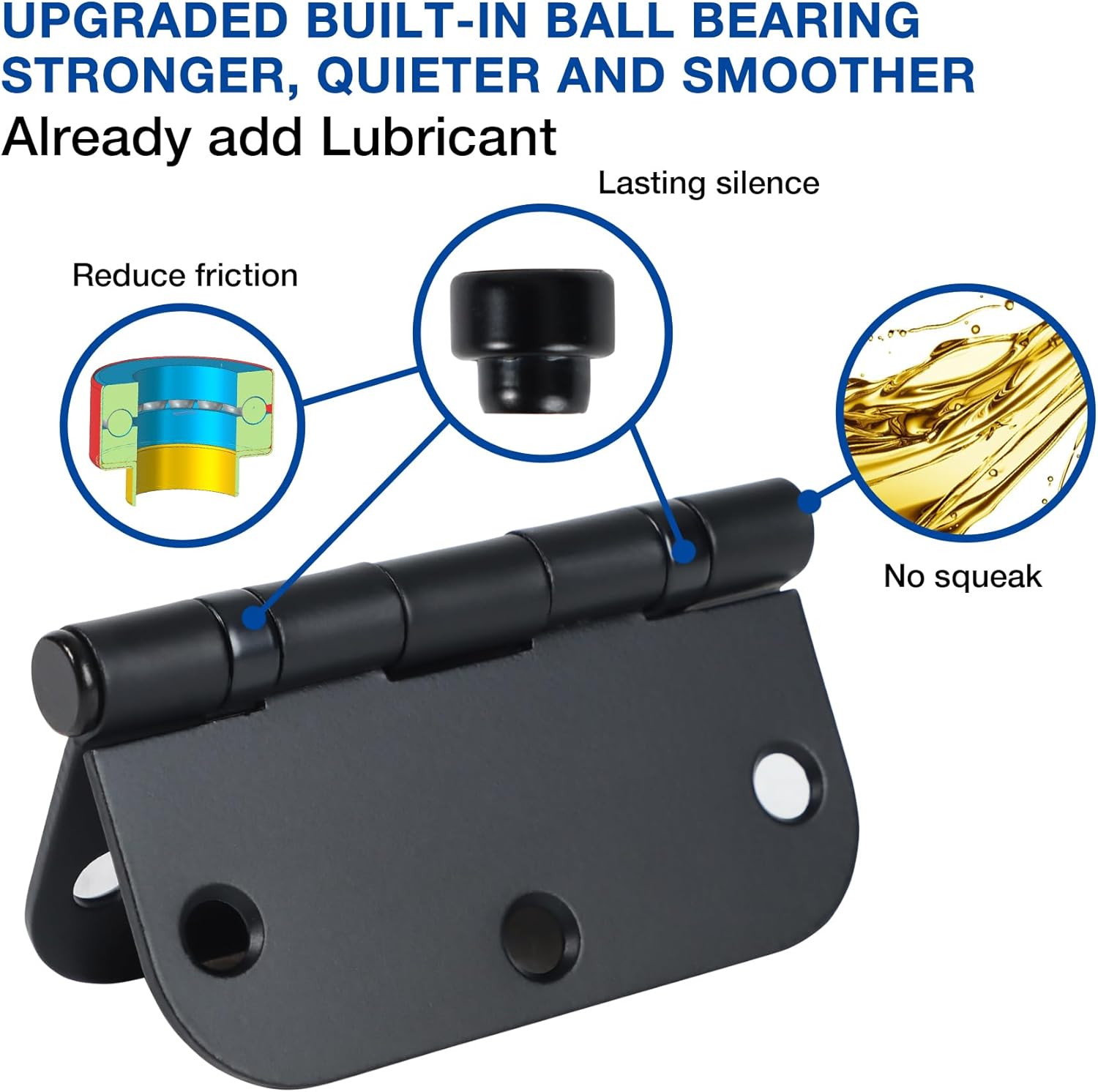 1 Pack Ball Bearing Door Hinges Matte Black 3.5 Inch 5/8" Radius Round Anti Squeak Interior 3-1/2"Flat Iron Bifold Standard Office Bedroom Indoor for Doors 3 ½" Hardware Home House Decor Accessories