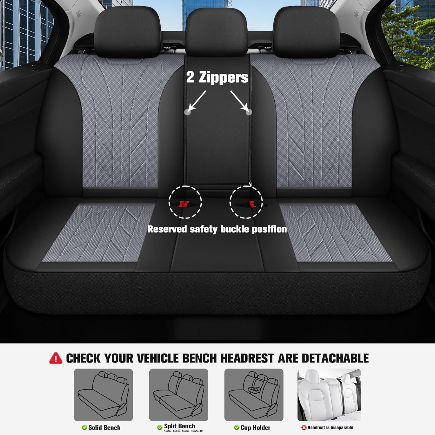 - [Motion Design]Experience the perfect blend of breathability and durability with our premium car seat cover. Featuring a center panel made of Roman check-pattern fabric, enhanced with 8mm thick high-quality foam, it offers superior ventilation, moisture-wicking, and all-day comfort. The sides are crafted from sleek and durable PU leather, with smooth stitching lines that add a touch of sophistication. Designed for the modern driver, this sporty style not only elevates your car’s interior but also delivers unmatched comfort for every journey. Stylish, practical, and made for those who truly appreciate the art of driving.