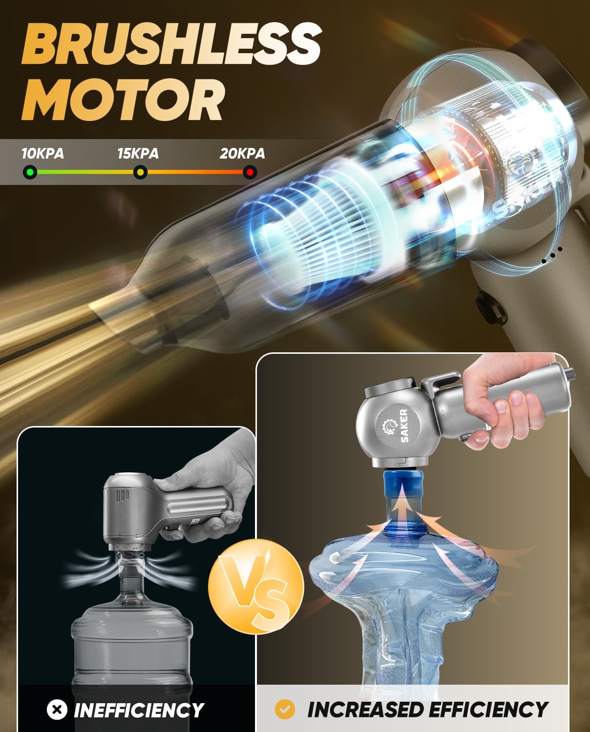 - 【Powerful Brushless Motor】The Saker car vacuum portable cordless adopts an upgraded high-speed motor with powerful performance, which can achieve three levels of suction adjustment, and can provide 20000pa suction in the maximum mode. Can help you remove dust, debris, pet hair, and other large objects from your home, office, or car within seconds.