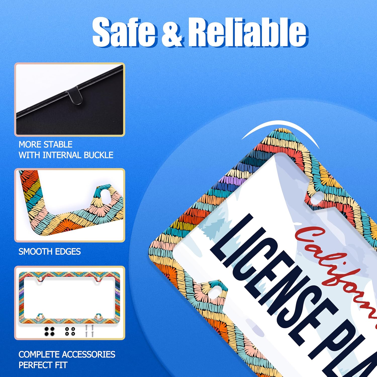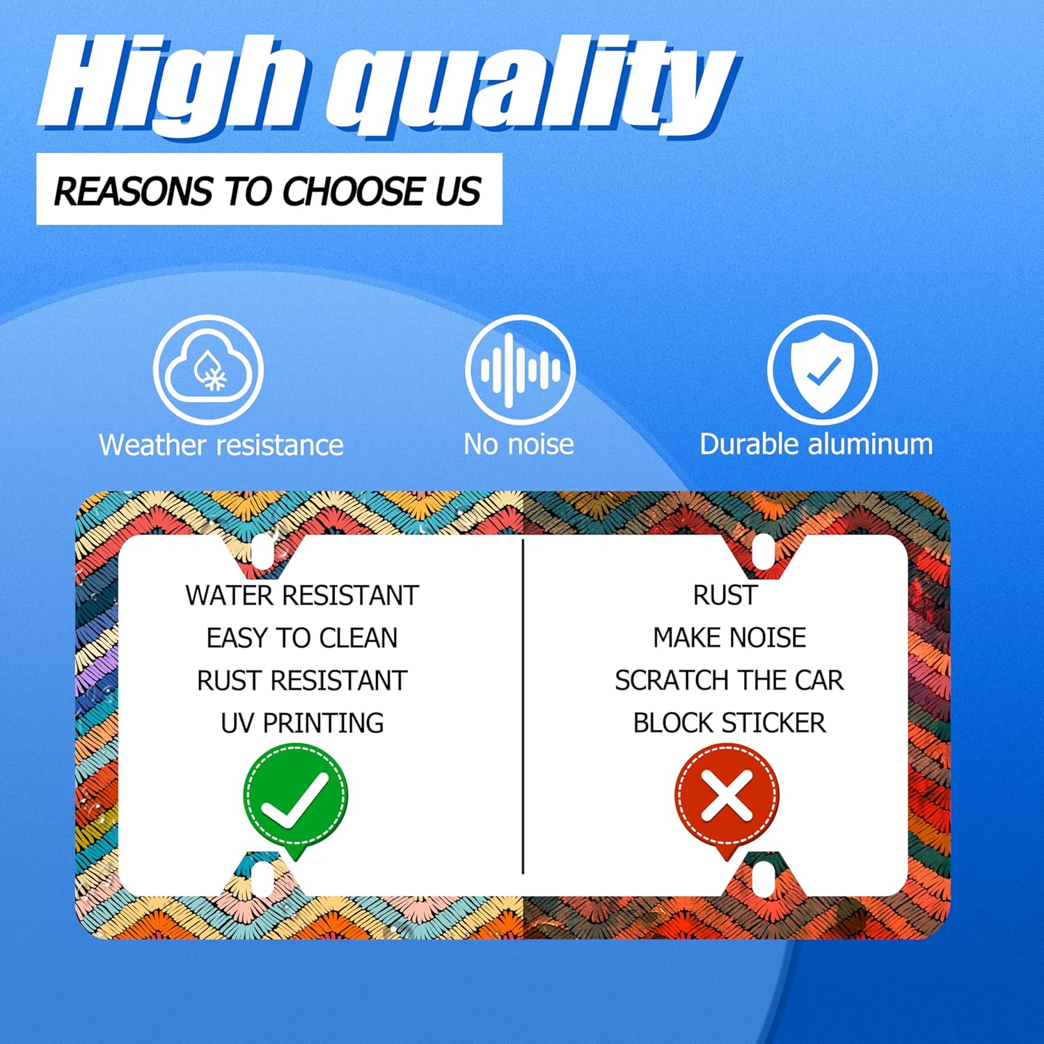 Boho License Plate Frame Colorful Stripe License Plate Stainless Steel Funny License Plate Holder Men Women Personalize Mandala Car Accessory Decoration 12.3" x 6.3"
