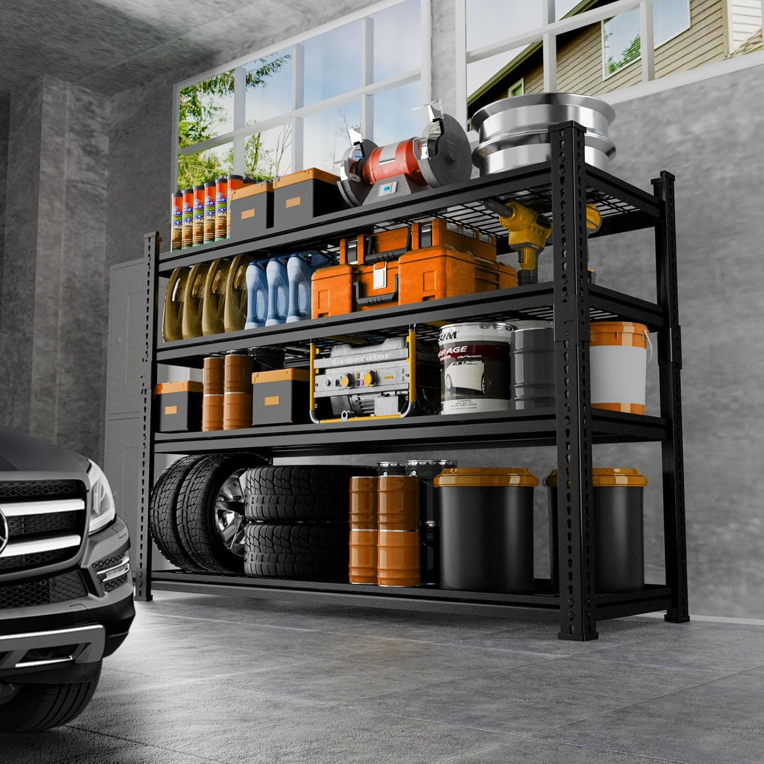 - 2640LBS Heavy Duty Storage Shelves: ROOMTEC heavy duty garage shelving unit is constructed from thickened heavy steel columns, each layer can withstand a weight of 660 pounds, with a total bearing capacity of 2640 pounds. Whether you're storing tools, equipment, or household supplies, these shelves is a reliable storage solution. The powder coat finish provides a smooth and attractive appearance but also resists water, rust, or corrosion, ensuring durability and longevity