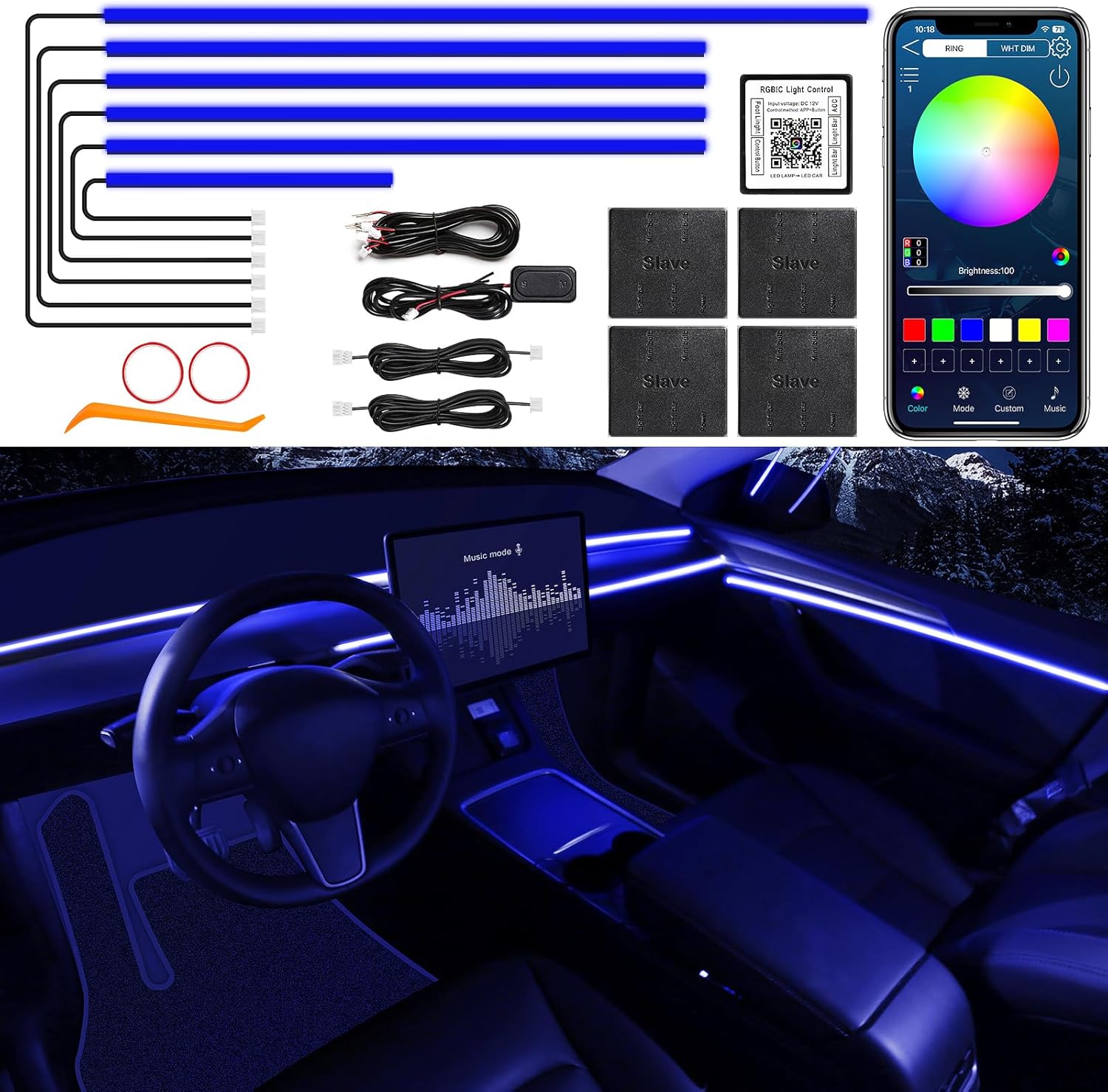 - 【16 Million Colors 】The RGB Acrylic Interior LED Strips Lighting built-in RGB color mode looks like a regular bouncing, dancing and flashing bar. If you don't want a blinking mode, you can also choose a static color mode in the app. MAODANER also supports voice control mode and more, bringing you more driving fun.