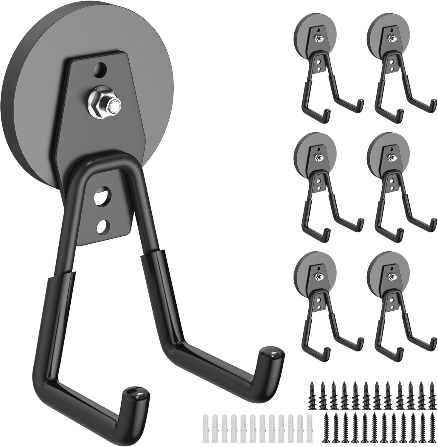 - [What's Included] 6 premium strong magnetic storage hook and 12 Pack screws/screw plugs. Should any quality issues arise, please contact us—we provide dedicated after-sales support to ensure your satisfaction