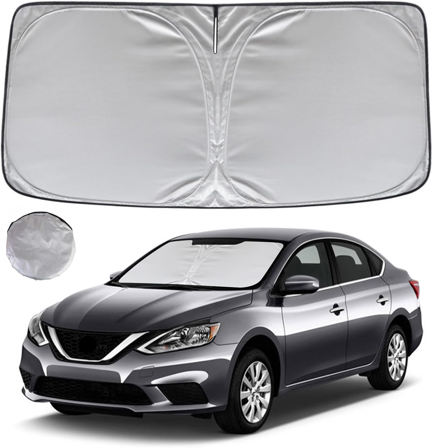 - KAYZT windshield sun shade is precise custom fit for 2014 2015 2016 2017 2018 2019 Nissan Sentra, Thoroughly covers every corner of the windshield, Tailored to accommodate rear view mirror, Ensuring a seamless and snug fit without obstruction, Must have car accessories for Nissan Sentra