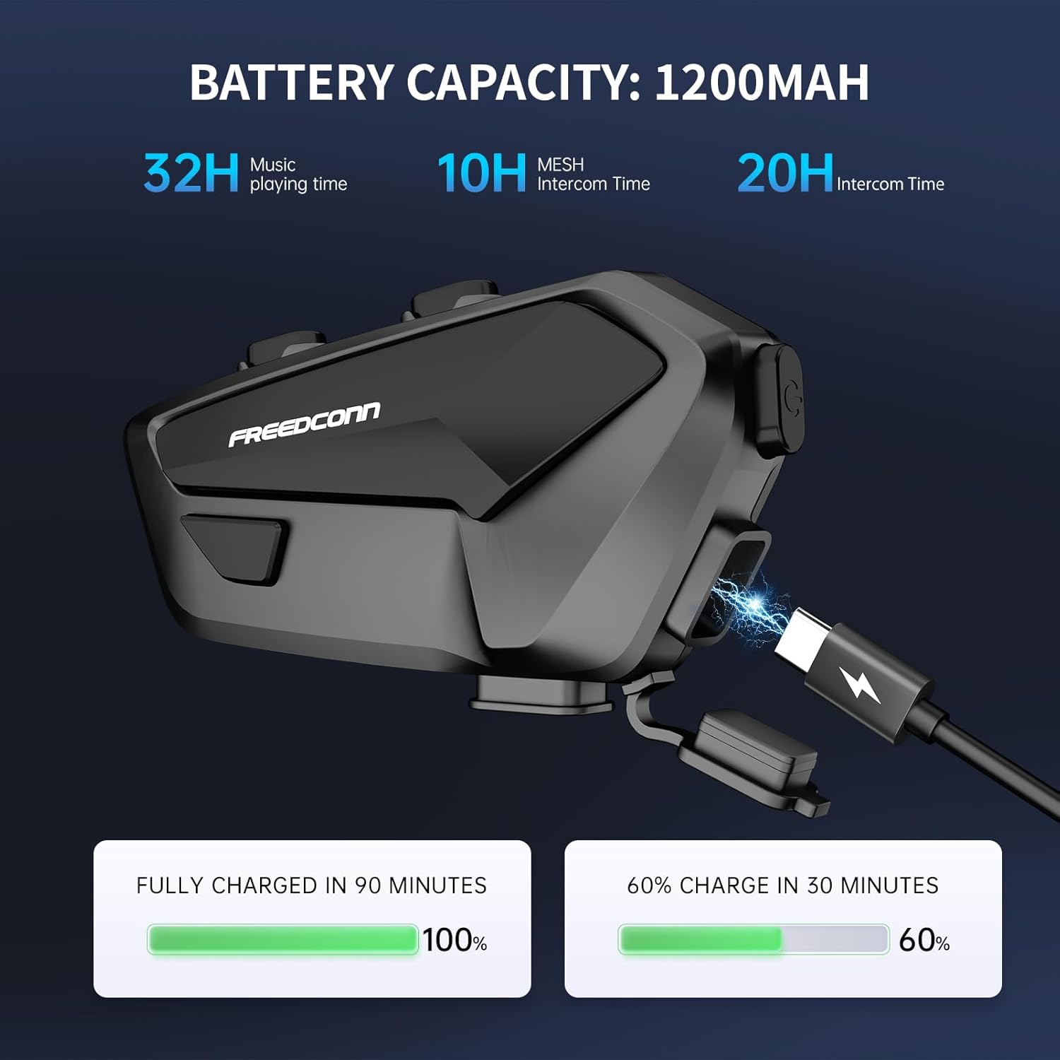 FreedConn FX Plus Motorcycle Helmet Bluetooth Headset, Auto-Join Mesh Network, 16 Riders Intercom Motorcycle Communication Systems with CVC and AI Noise Cancellation for Group Ride, 1 Pack